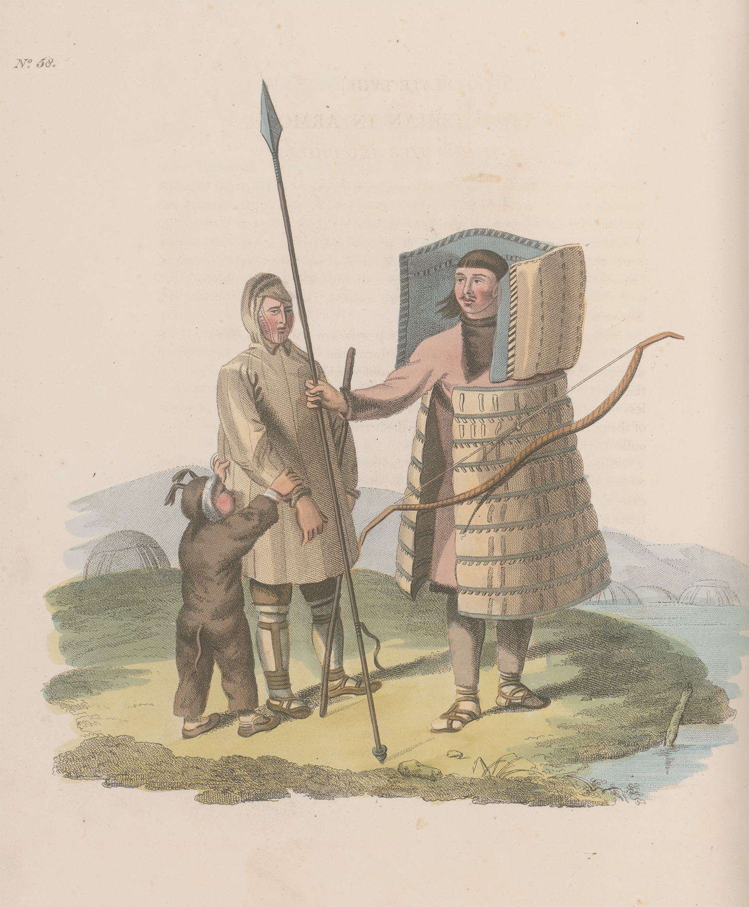 Lipperheide Kaa 18. Colas 702. Hiler 192. Abbey, Travel 244. – Prachtvolle Publikation mit eingebundenem Widmungsblatt "To her Royal Highness the Princess Elizabeth; the most competent judge, as well as the most liberal patroness of the fine arts, this work is humbly inscribed ... Edward Harding". Der Kupfertitel zeigt die ikonische Petersburger Skulptur Peters des Großen als ehernen Reiter auf steigendem Pferd des Étienne-Maurice Falconet; die Trachten bilden ein Panoptikum der einzelnen und einstigen Völkerschaften des Russischen Weltreichs (honi soit qui mal y pense - in heutigen Zeiten): aus dem Baltikum, Finnland, Lappland, Ostsibirien bis Kamtschatka, dem Kaukasus, Moldavien, Georgien, Jakutien, der Tartarei, Kirgisien und vielen anderen asiatischen Völkern. Bei den Kupfern handelt es sich um vergrößerte Nachbildungen nach J. G. Georgis "Beschreibungen allen Nationen des Russischen Reichs", 1776-1780 (Lipperheide). – Tafel XIV ohne Erklärung, die Lage E aber wie üblich vollständig. Nur gelegentlich leicht gebräunt und ausnahmsweise etwas stockfleckig, kaum Abklatsch. Die Tafeln in schöner Farbigkeit, bemerkenswert breitrandig und reizend gebunden.