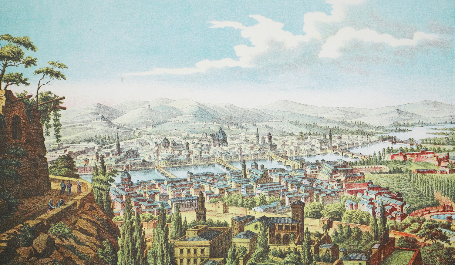 Buckardt, C. Ansichten von Alexandrien, Berlin und Florenz. 3 Chromolithographien. 24 x 36,5 cm (Darstellung) bzw. 35,5 x 52 cm (Blatt).