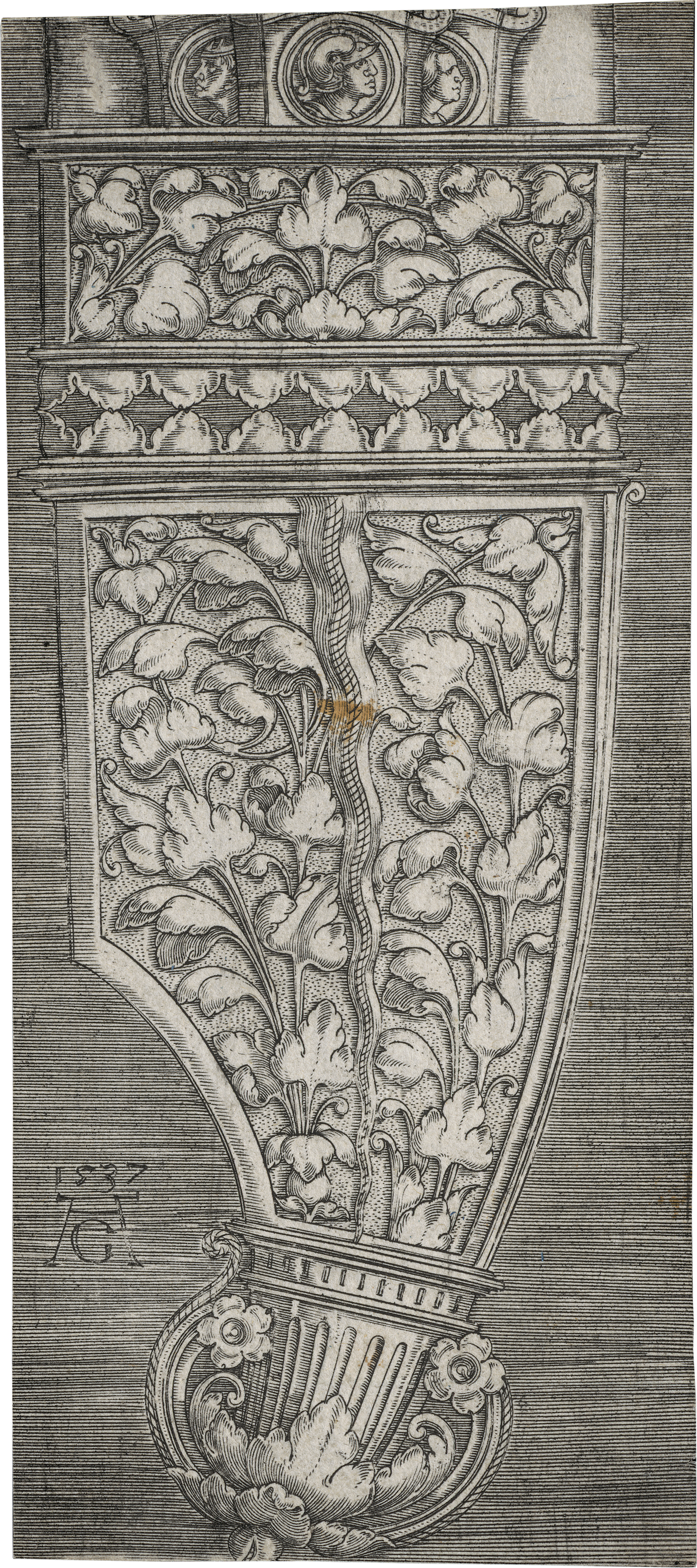 Ornament für die Spitze einer Dolchscheide. Kupferstich. 14,3 x 6,4 cm. 1537. B. 264, Hollstein 264, Mielke (New Hollstein) 264.