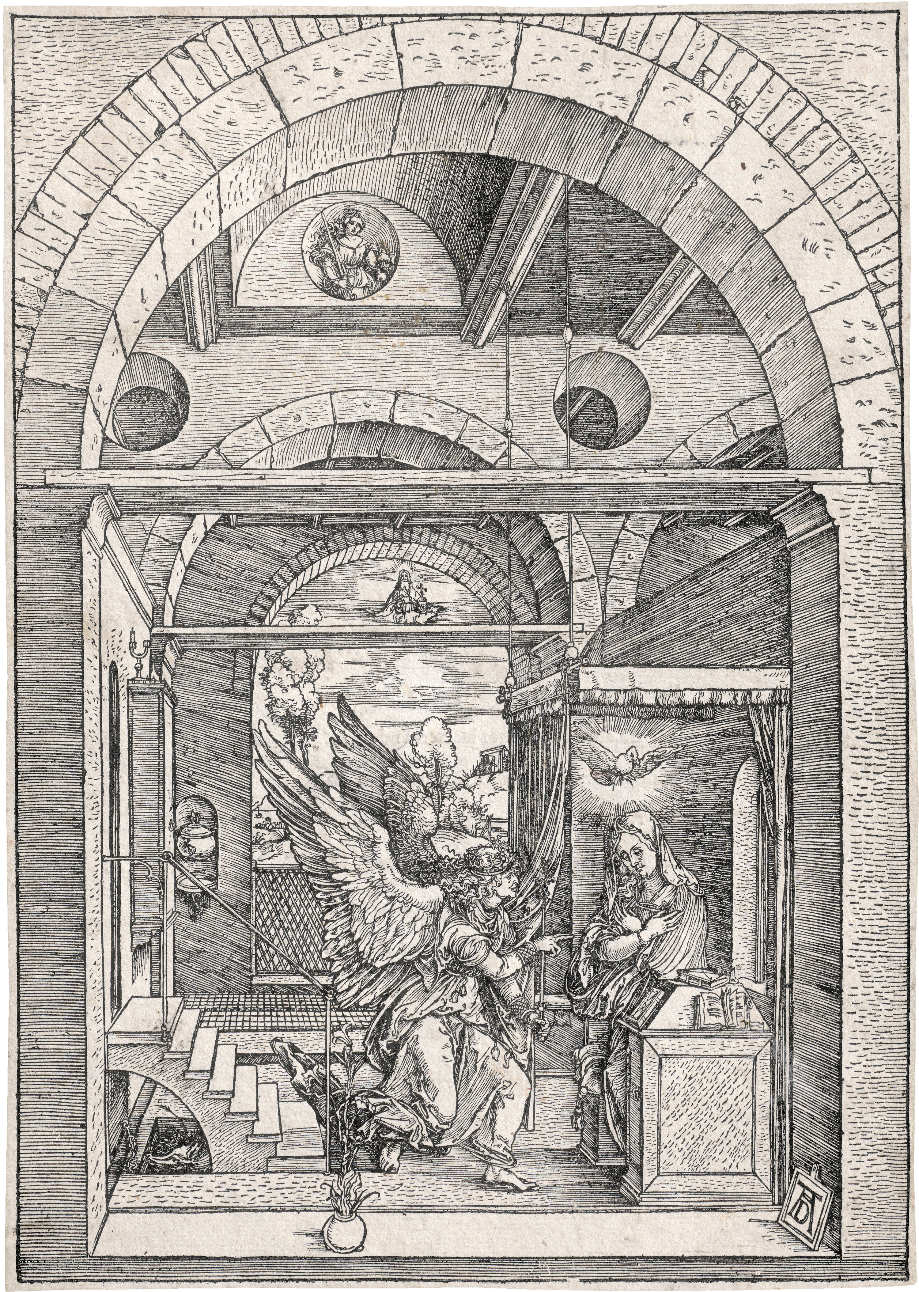 Die Verkündigung. Holzschnitt. 29,8 x 21 cm. Um 1503. B. 83, Meder 195, lateinische Textausgabe von 1511.