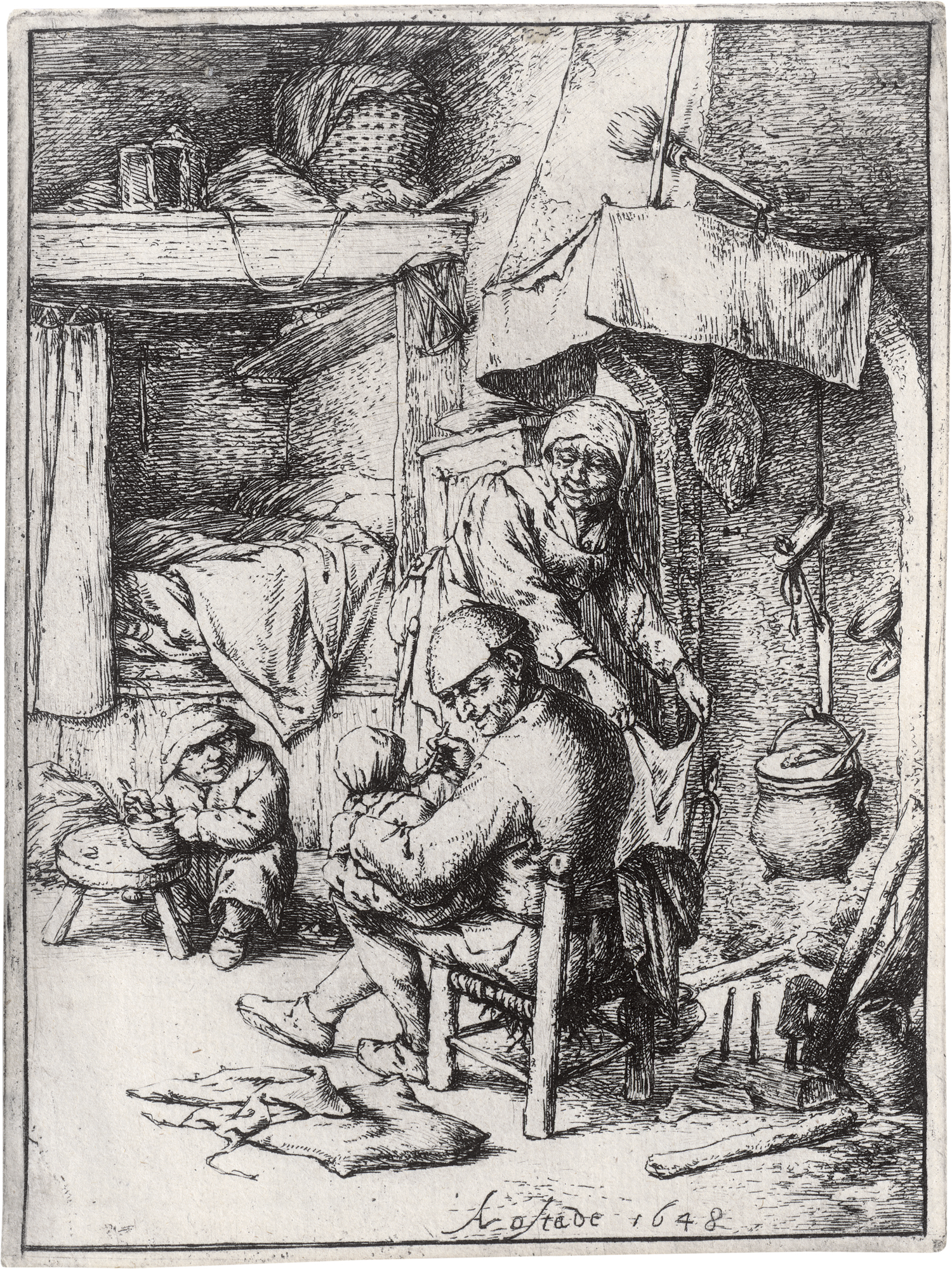 Der Familienvater. Radierung. 12,5 x 9,4 cm. 1648. B. 33, Dutuit, Davidsohn, Godefroy III (von V), Hollstein 33 IV (von VI), Giordani/Rutgers (New Hollstein) 15 III (von IV).