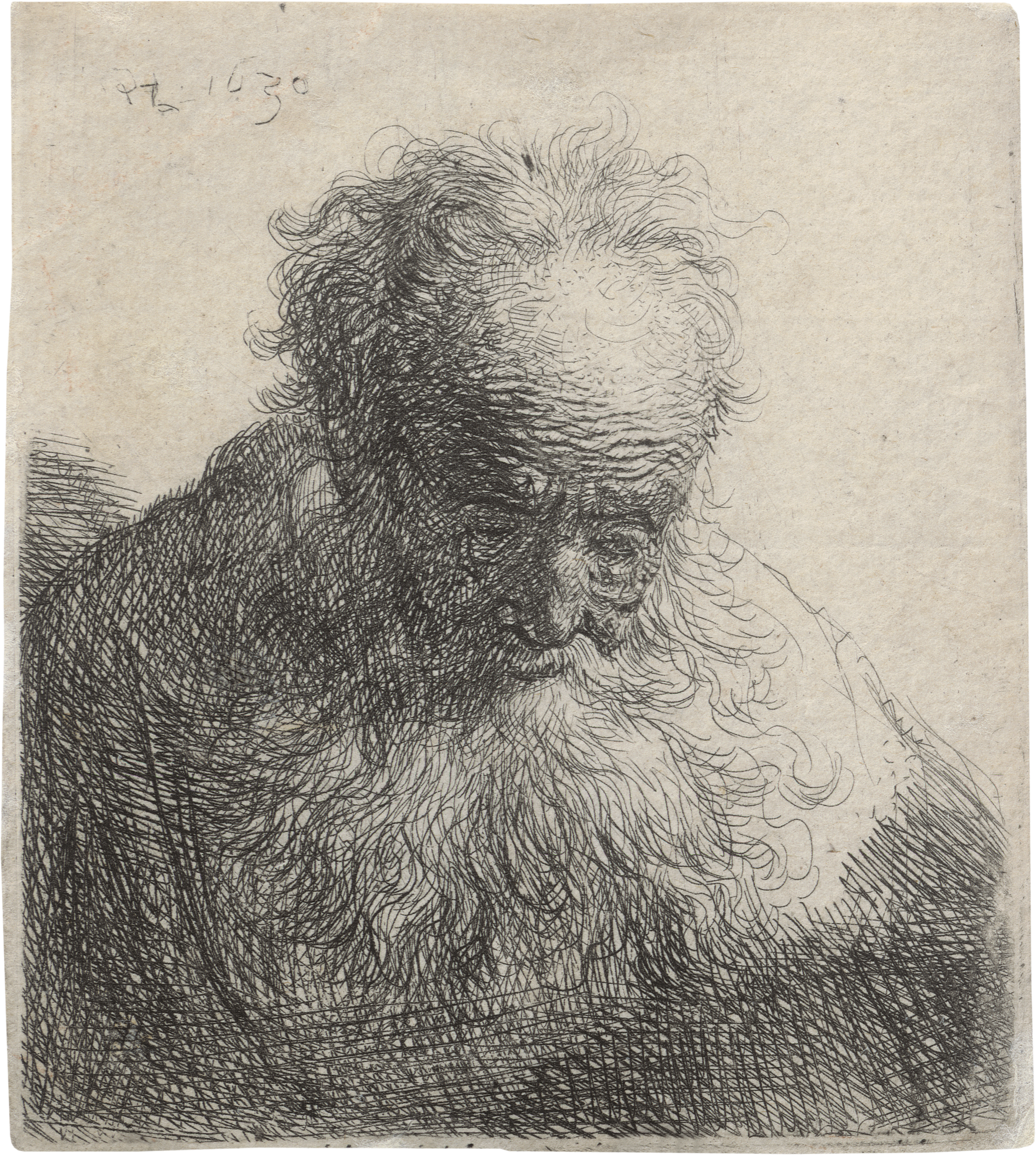 (1606 Leiden - 1669 Amsterdam)Greis mit langem Bart, stark vorgebeugt