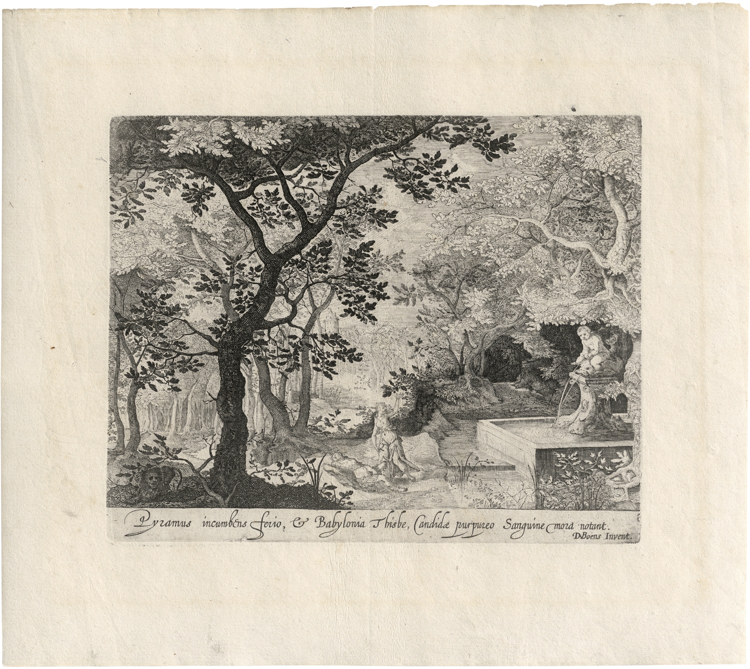 nach. Pyramus und Thisbe; Hero und Leander. 2 Kupferstiche. Je ca. 16,4 x 20,4 cm. Hollstein (after Vinckboons) 2 und 4, je I (von II). Wz. Großes Wappenschild mit Posthorn und Schrägbalken.