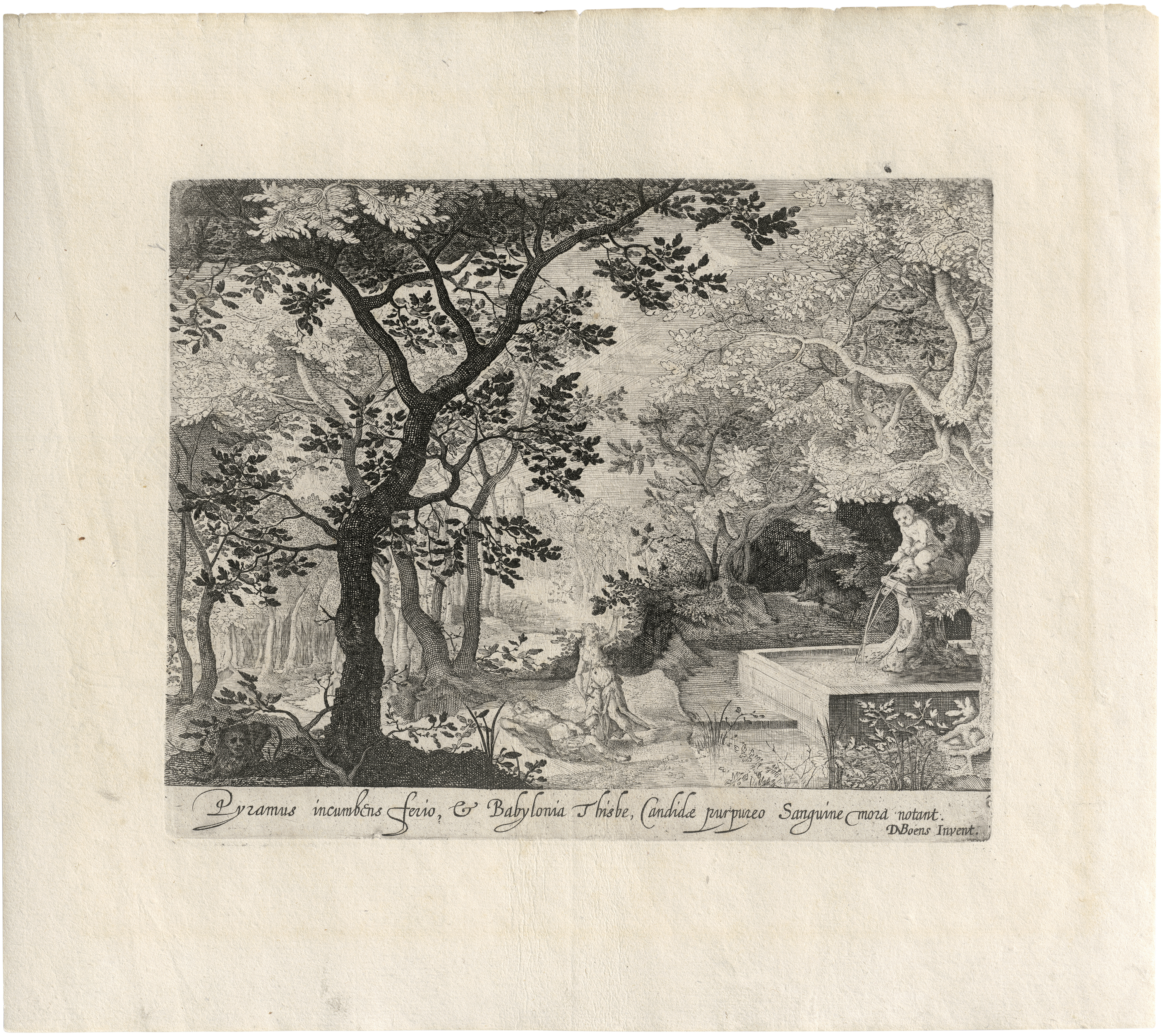 Die beiden Blätter stammen aus einer vierteiligen Suite "Landschaften mit Metamorphosen" nach den Vorlagen David Vinckboons, der Urheber ist bisher unbekannt. Jeweils vor der Adresse von Jan Claesz. Visscher. Ganz ausgezeichnete Drucke mit breitem Rand. Lediglich geringfügige Alters- und Gebrauchsspuren, nur sehr schwach lichtrandig, vertikale Mittelfalte mit zarten Trockenfältchen, sonst sehr schön und einheitlich erhalten. Sehr selten.
