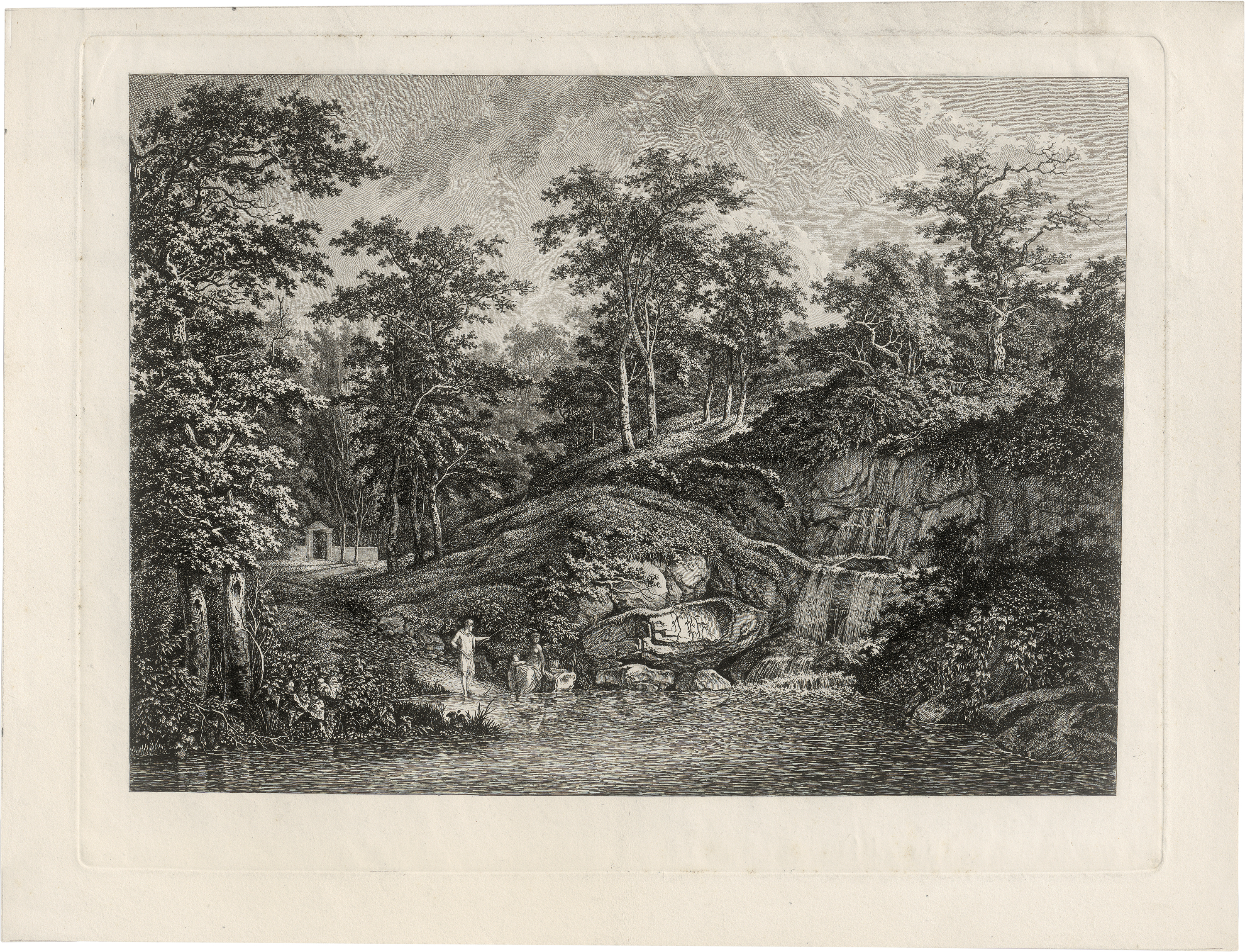 Le pêcheur. Radierung auf Velin nach Salomon Gessner. 32,8 x 42,8 cm. Jentsch 297, Martens 282 I (von II).