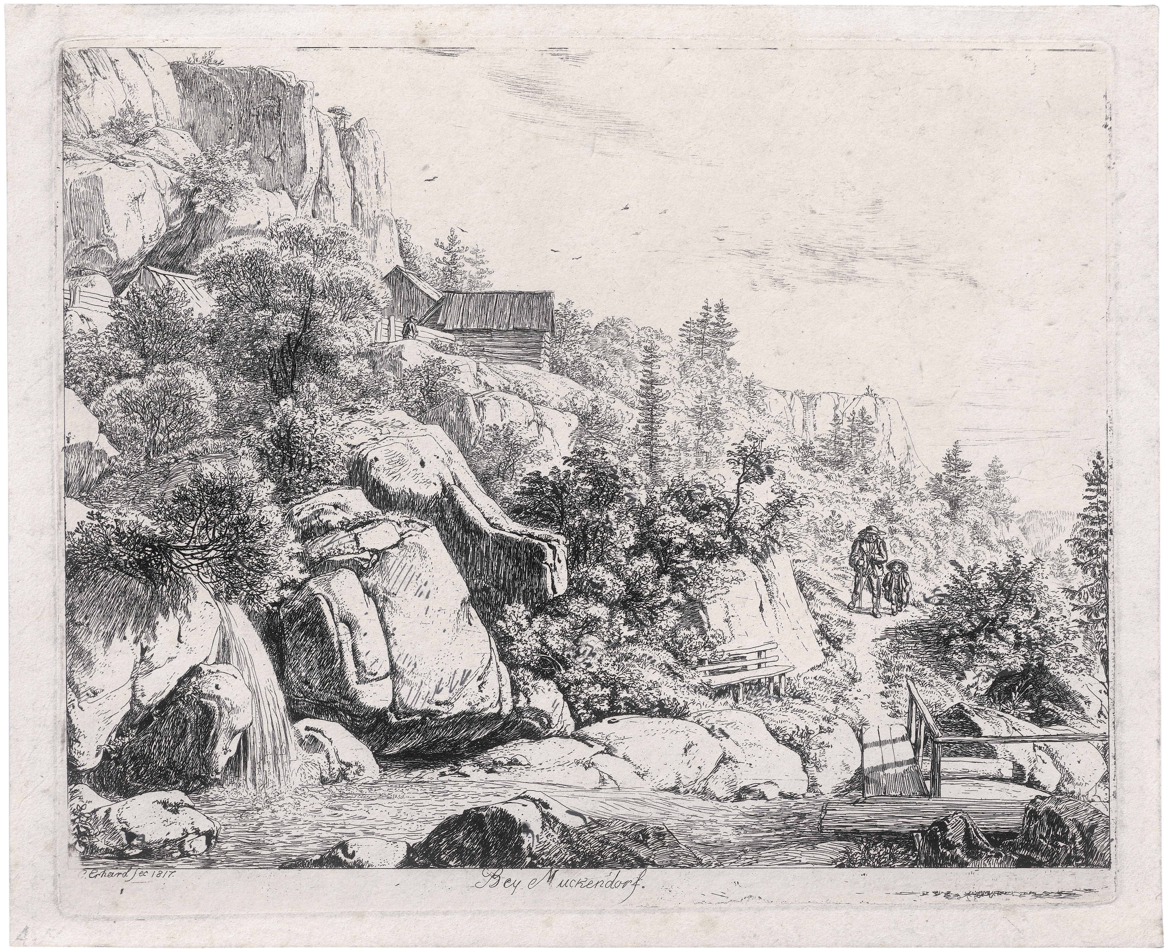 Bey Muckendorf. Radierung auf Velin. 17,5 x 21,1 cm. 1817. Apell 14 I (von III).