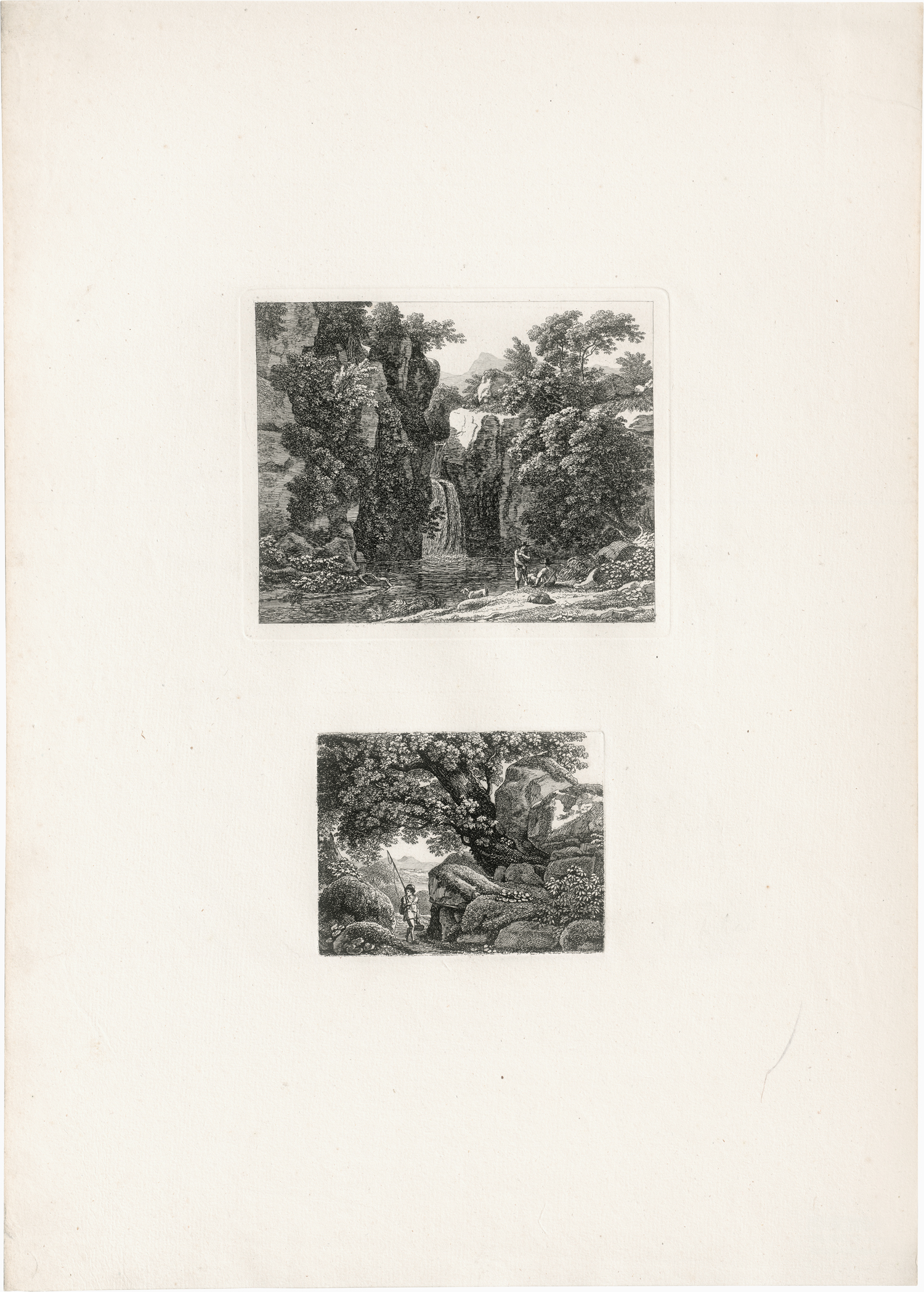 Die reizvolle, in den 1820er Jahren in Rom entstandene Folge gehört der reifen Schaffensphase des Künstlers an. Die intimen Landschaftsausschnitte sind in einer kleinteiligen, detaillierten Radiertechnik ausgeführt. Reinhart war zweifelsohne der begabteste Radierer unter den damals in Rom tätigen deutschen Künstlern. Sein besonderes Talent für die Wiedergabe von Licht und Atmosphäre ist ohne das Vorbild niederländischer Italianisanten des 17. Jahrhunderts, wie Jan Both, Karel Dujardin und Herman van Swanevelt nicht denkbar. Prachtvolle, kontrastreiche Drucke mit dem vollen Rand. Geringfügig angestaubt und fleckig, sonst sehr gut erhalten.