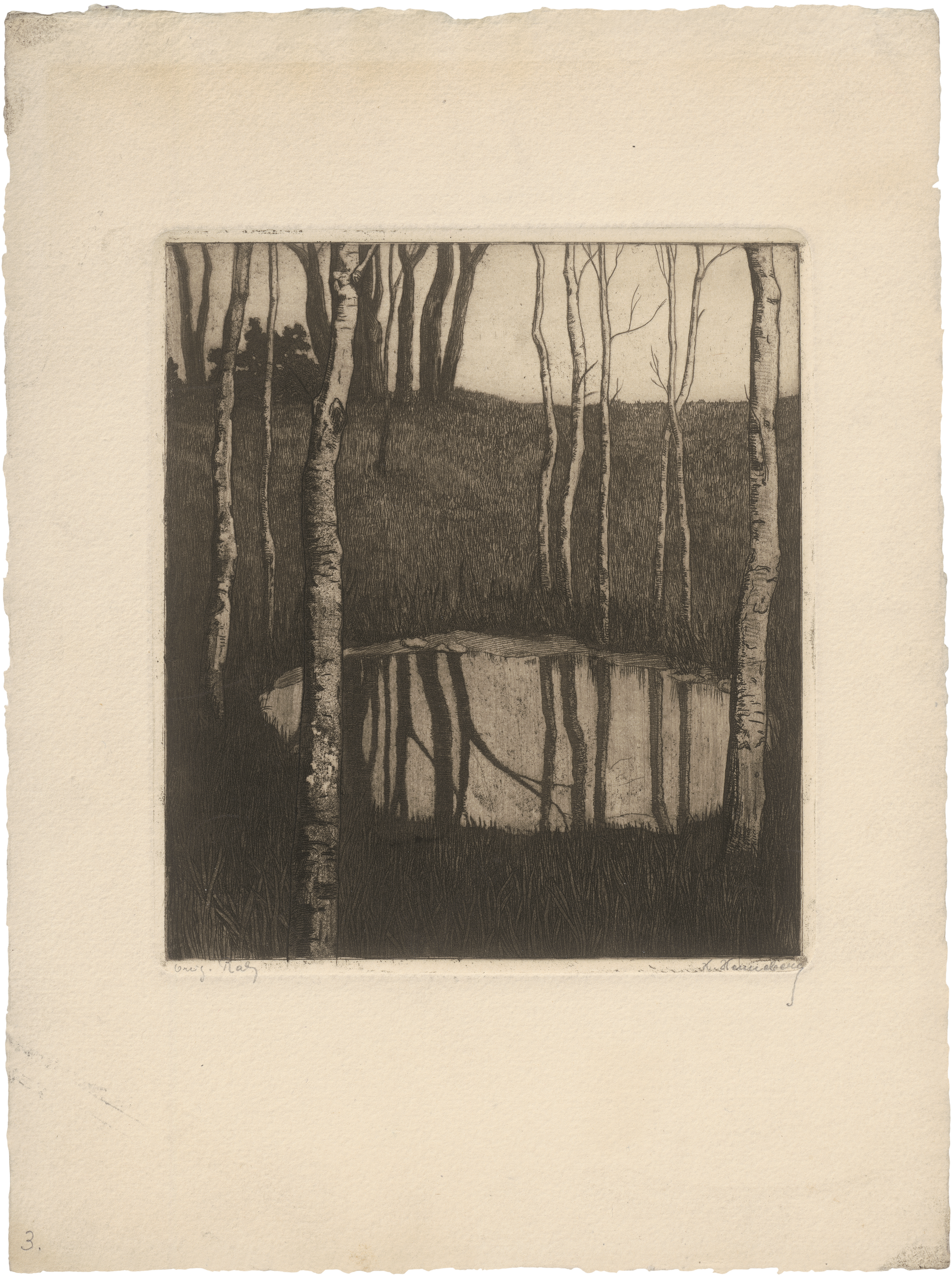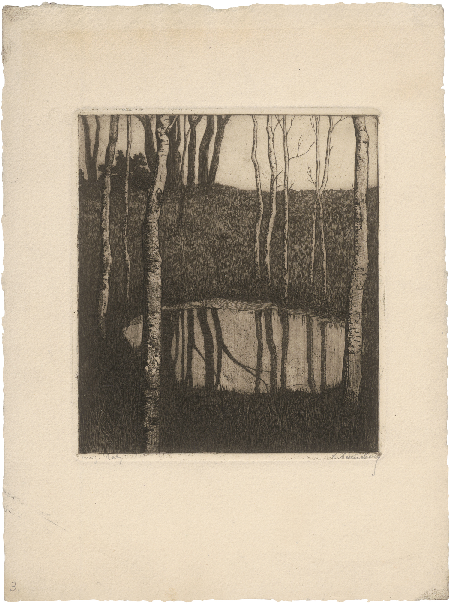 Waldteich. Kaltnadelradierung auf Velin. 19,3 x 17 cm. Signiert und bez. "Orig. Rad.".
