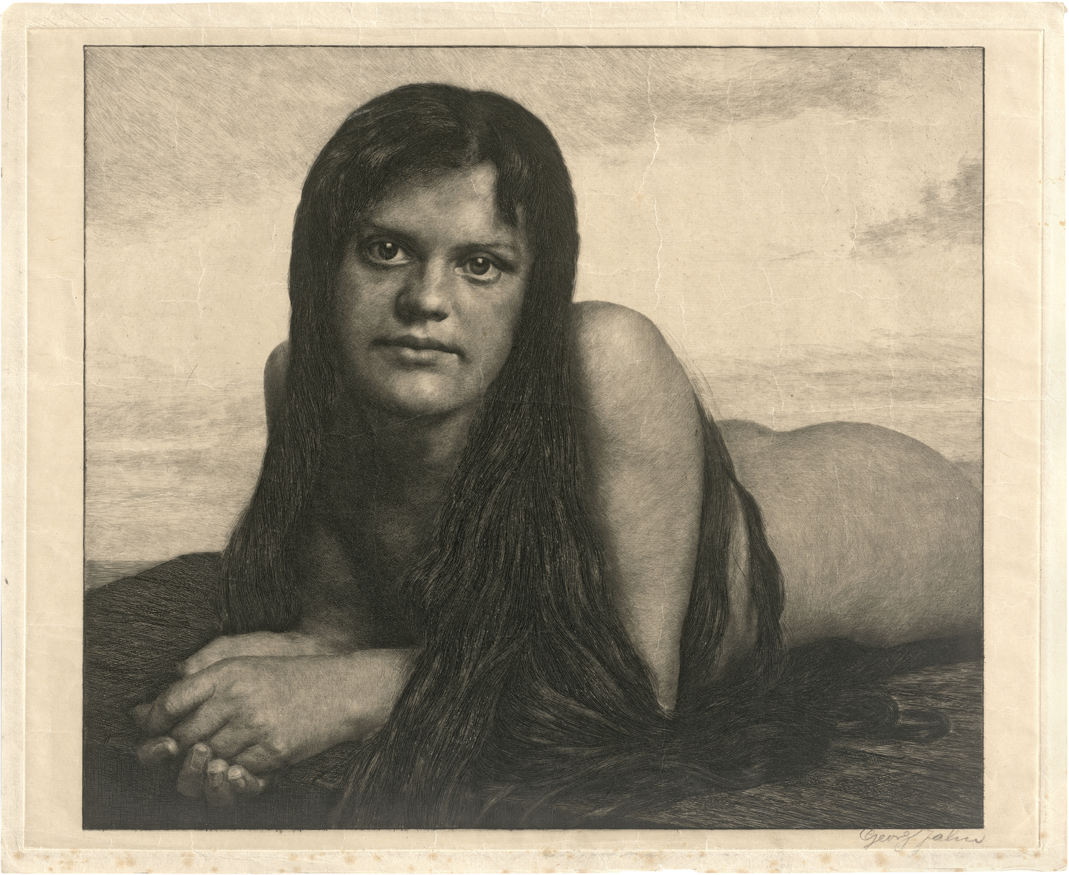 Sirene (Sphinx). Radierung auf Similijapan. 29,6 x 36,8 cm. Signiert. (1897). Jahn 20.