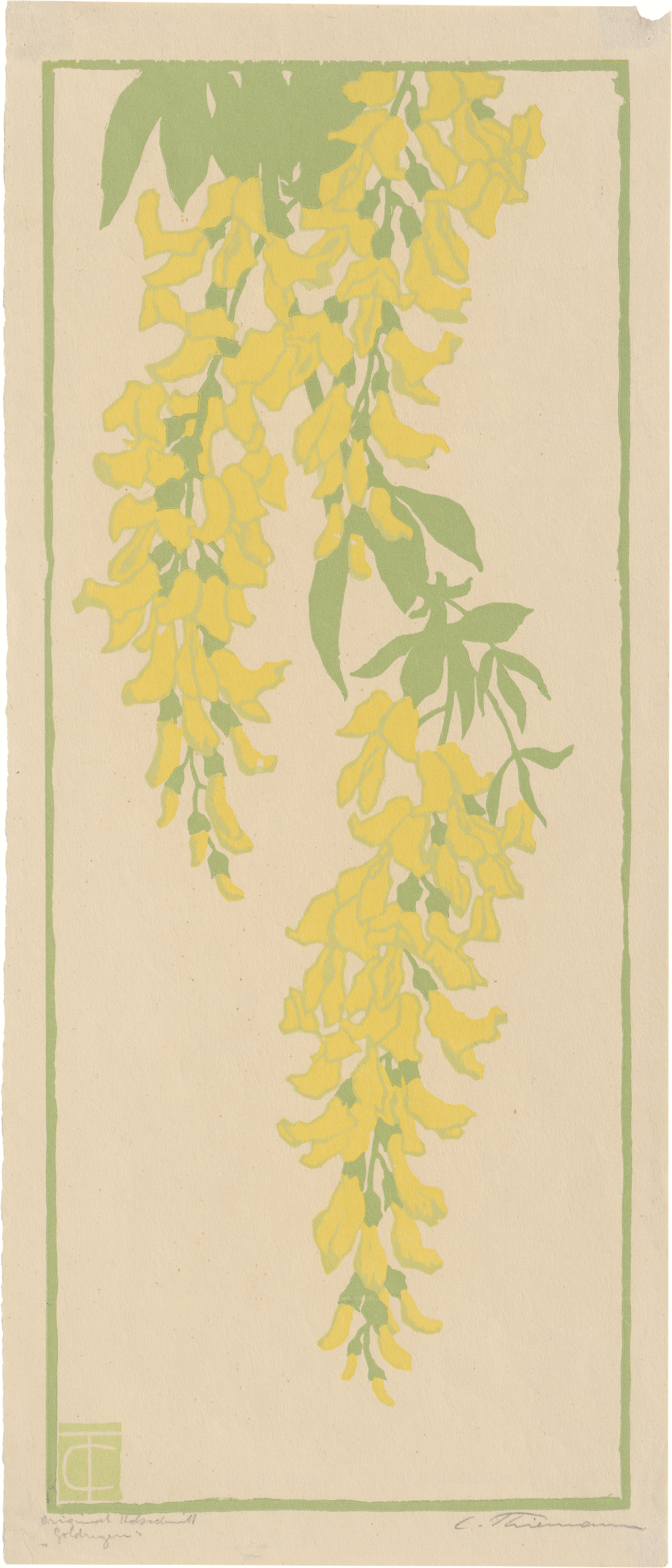 Goldregen. Farbholzschnitt auf chamoisfarbenem Japan. 35,8 x 14,4 cm. Signiert, betitelt und als "Original-Holzschnitt" bezeichnet. (1921). Merx 322 F.