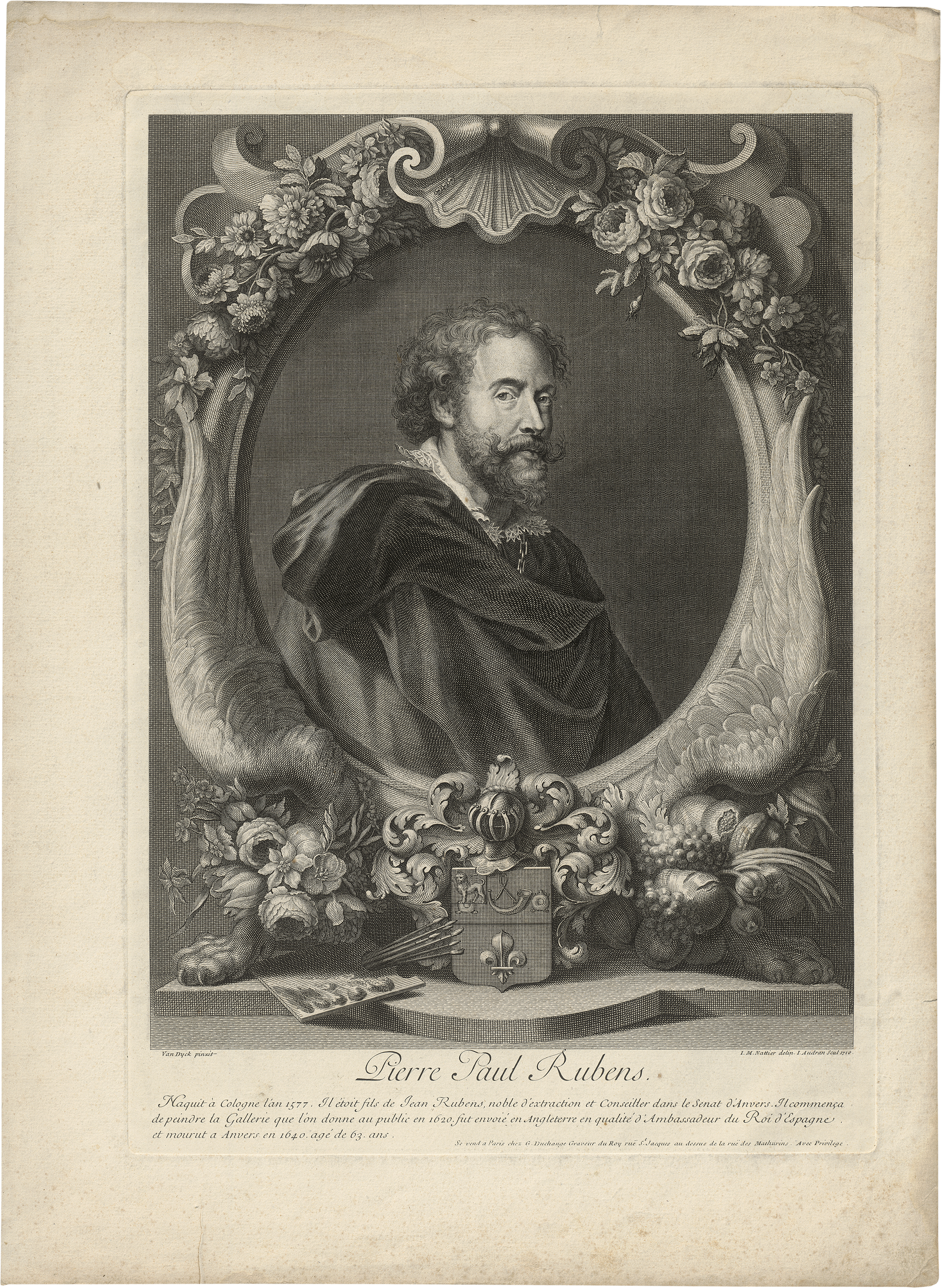 Bildnis Peter Paul Rubens. Kupferstich nach Anthony van Dyck. 53 x 35,5 cm. 1710. Le Blanc 330, IFF 35. Wz. Doppelkopfadler.