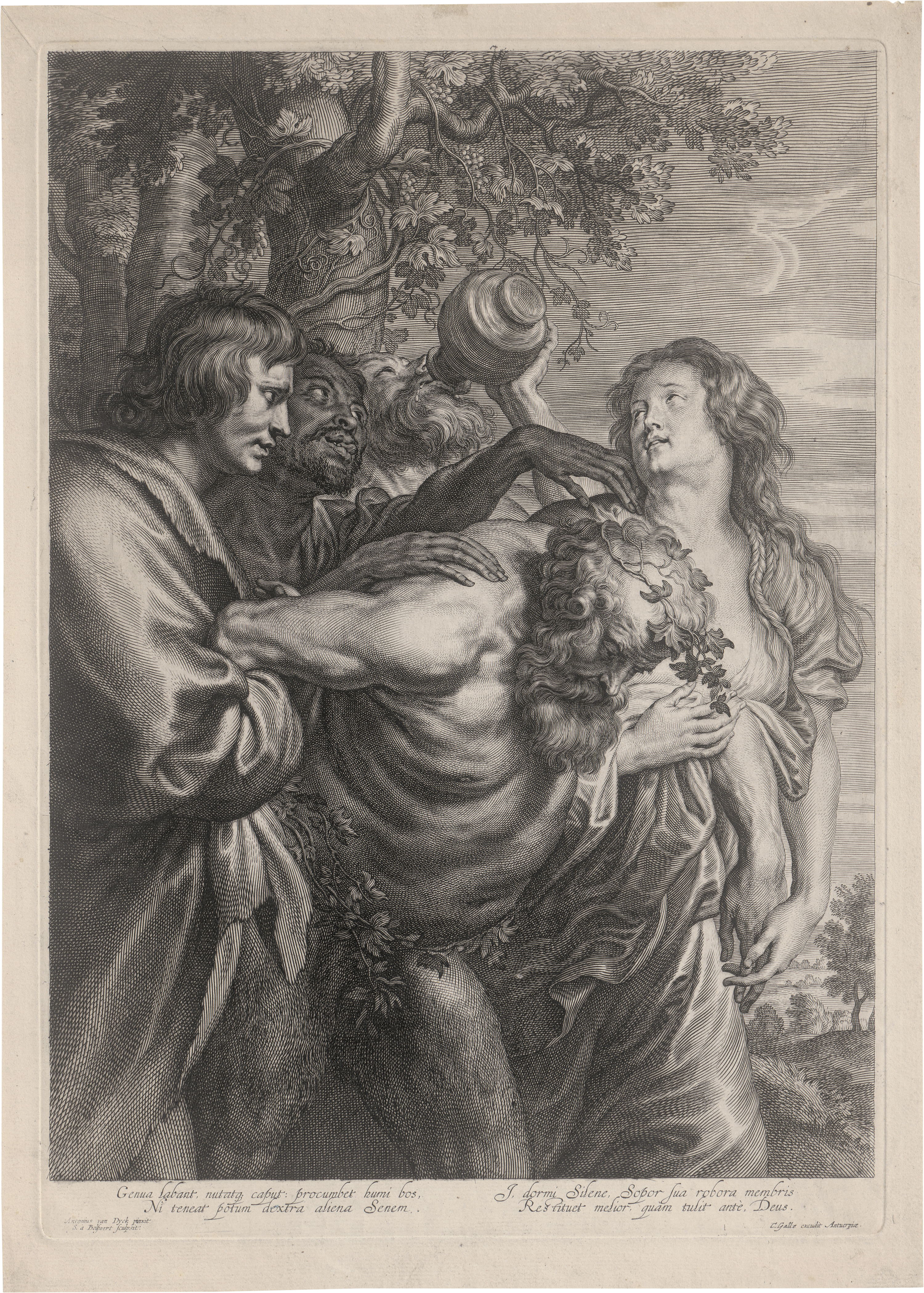 Der Triumph des Silen. Kupferstich nach Antonis van Dyck. 44 x 30,8 cm. Le Blanc 191, Hollstein 286 III. Wz. Schrift.
