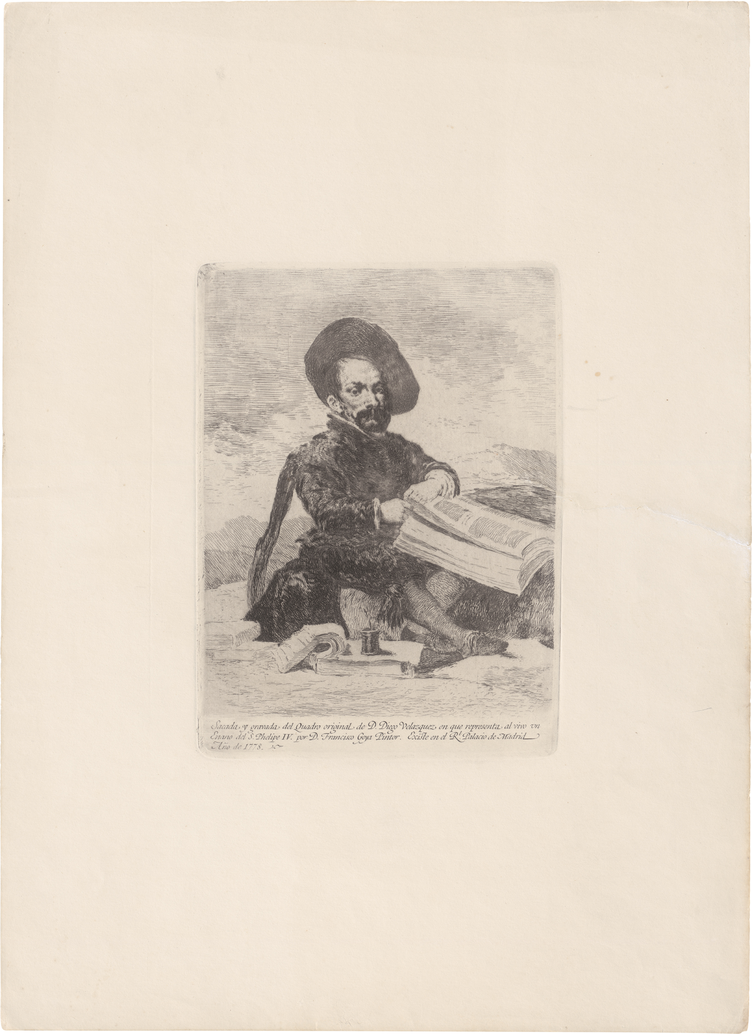 Un Enano (El Primo). Radierung nach Diego Velázquez auf Velin. 21,5 x 15,6 cm. 1778. Delteil 19, Harris 16 III, 3. Ausgabe.