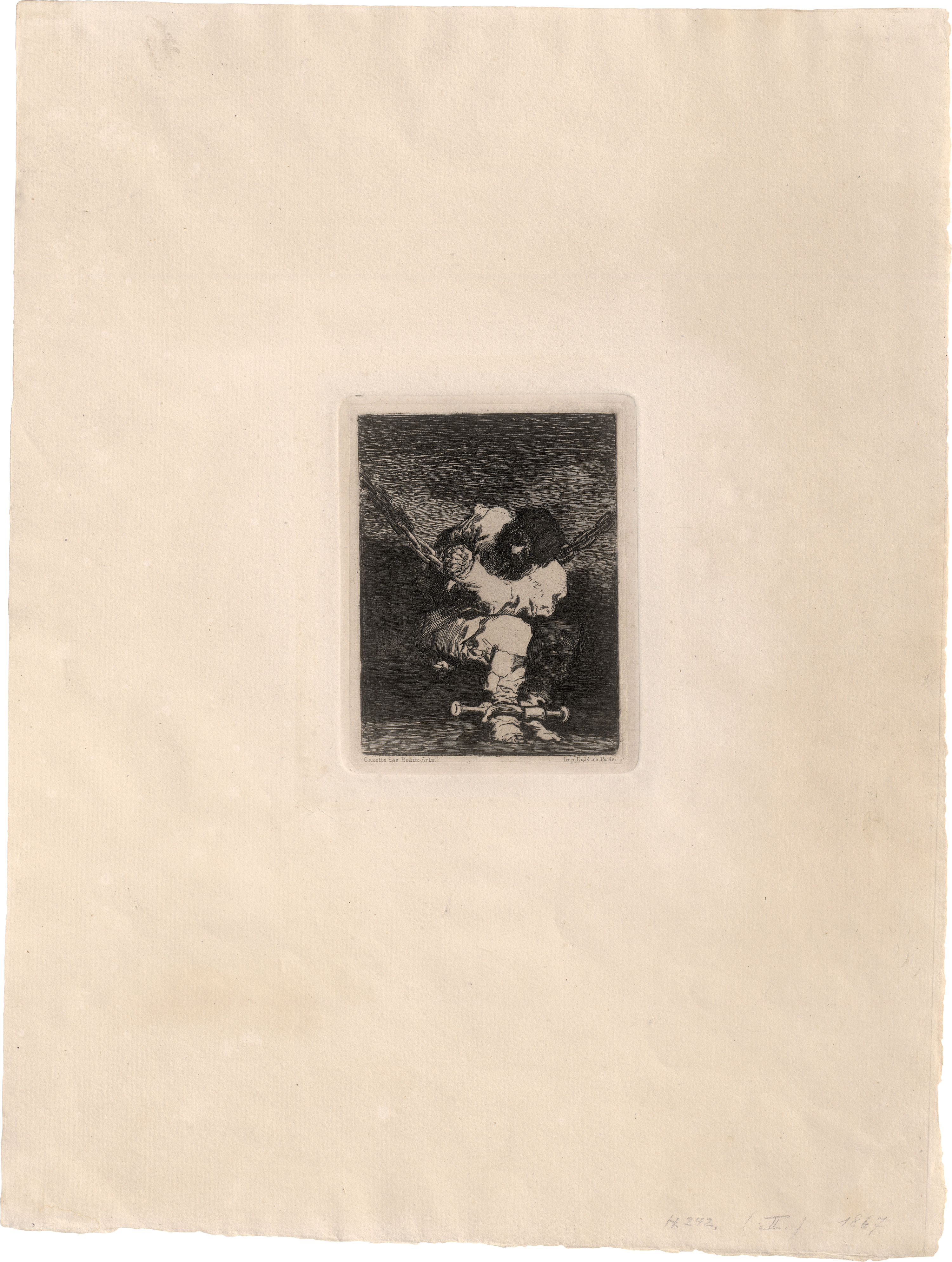 Mit der Adresse Delâtres, aus der Ausgabe für die Gazette des Beaux-Arts, Paris aus dem Jahre 1867. Prachtvoller Druck mit breitem, an zwei Seiten dem vollen Rand. Das Papier insgesamt etwas uneinheitlich gebräunt und knickspurig, blasser Lichtrand, sonst in guter Erhaltung.