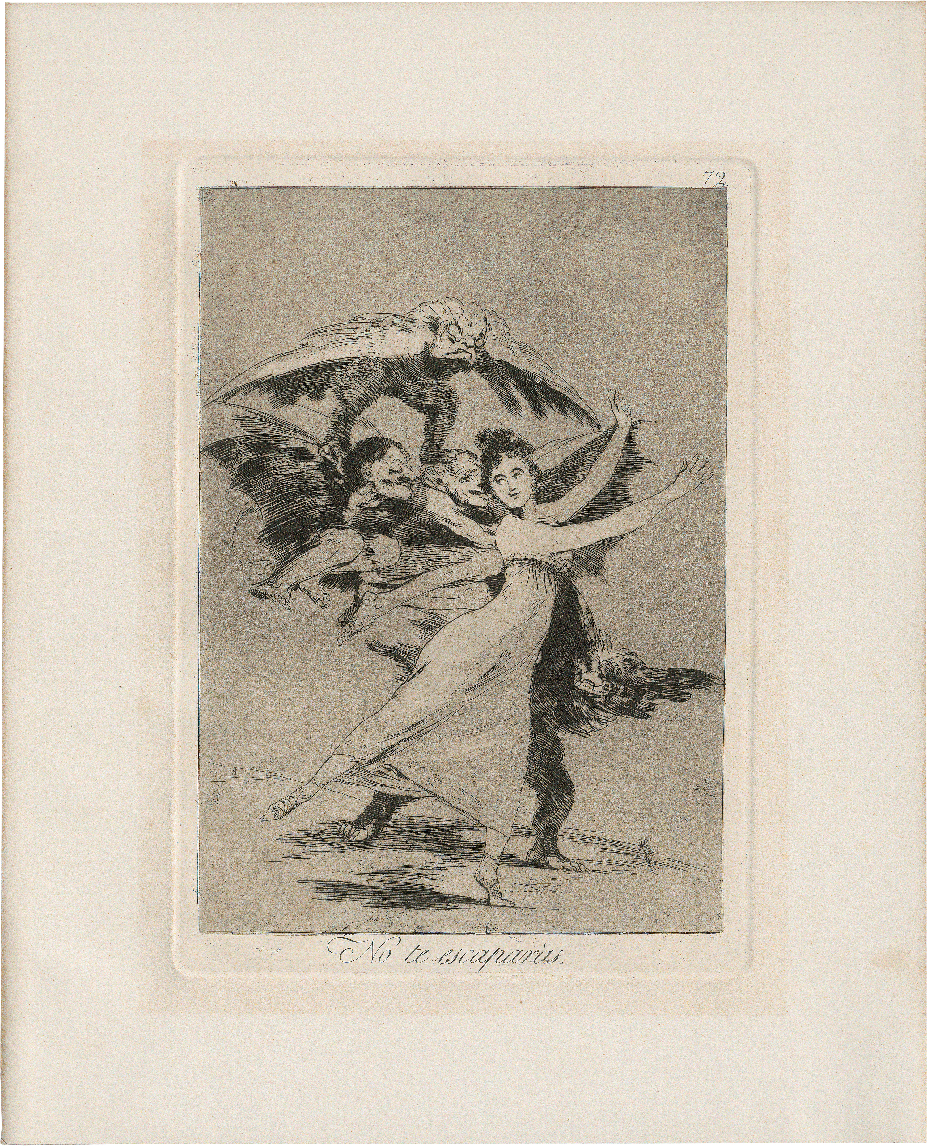 No te escaparas. Radierung mit Aquatinta auf Velin. 21,5 x 15 cm (Plattenkante); 30 x 24,4 cm (Blattgröße). Delteil 109, Harris 107 III, 6. Ausgabe (von 12).