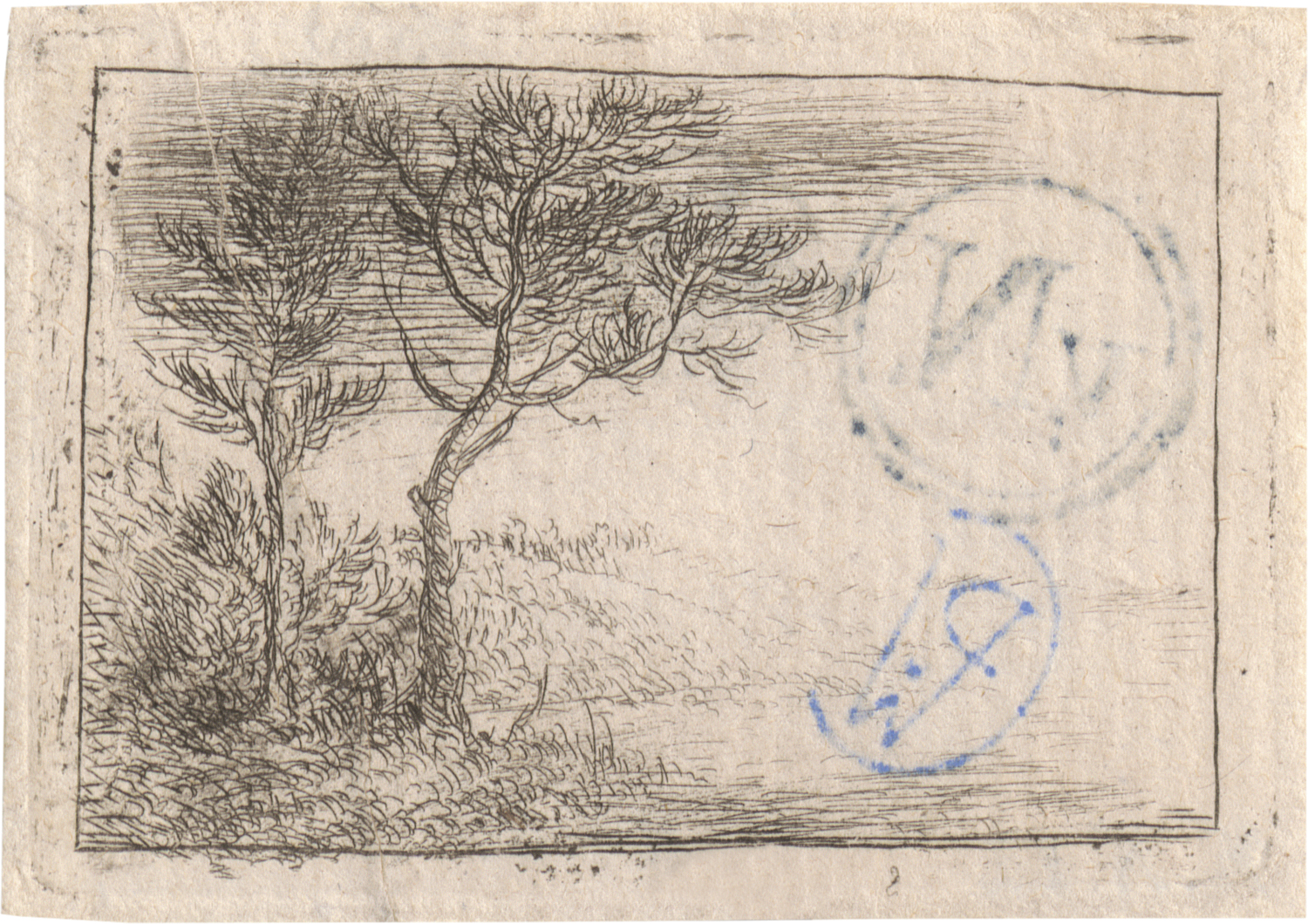 Die Landschaft mit zwei Bäumen. Radierung. 3,4 x 4,9 cm. Hollstein 18 II.