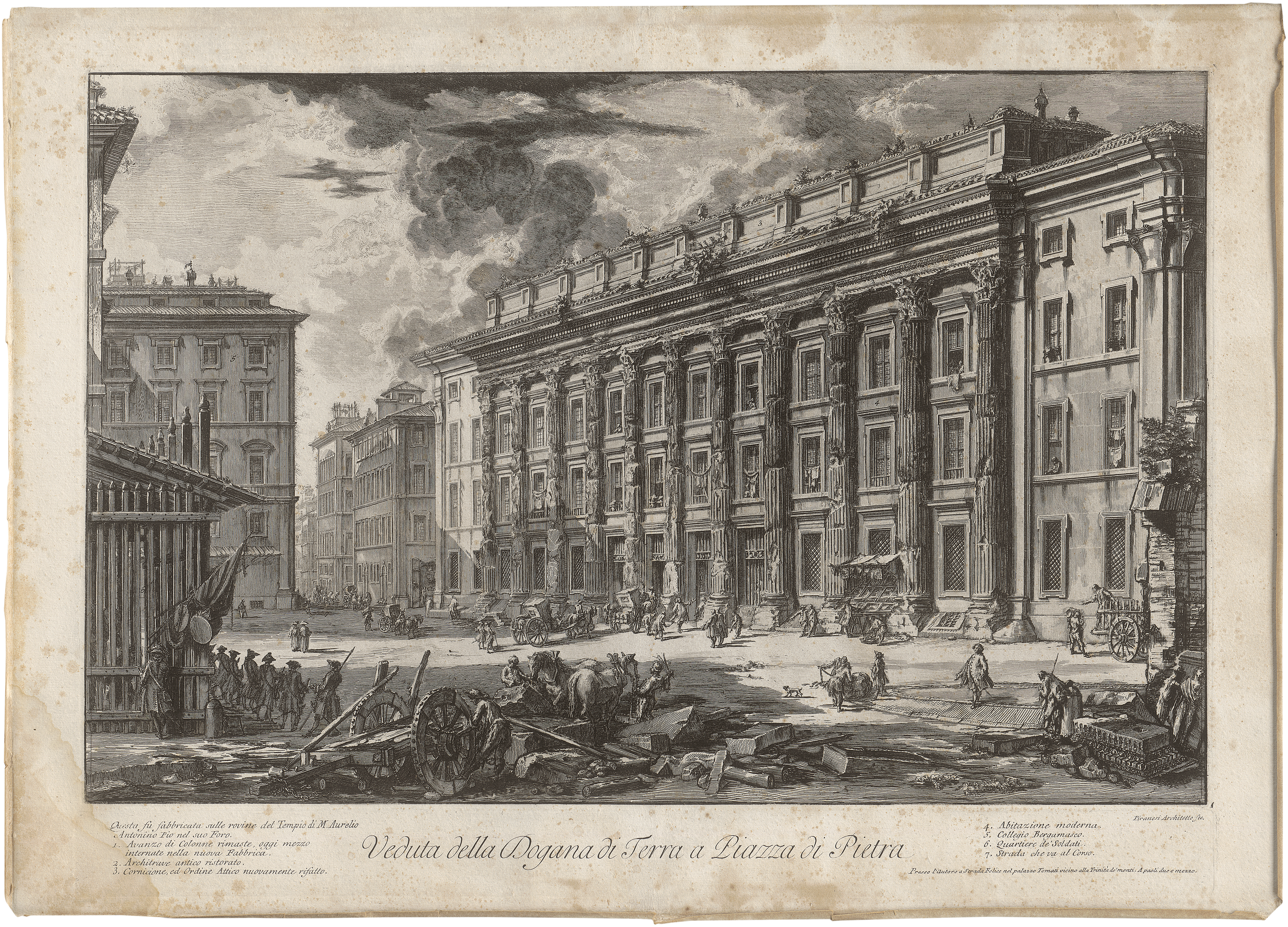 Veduta della Dogana di Terra a Piazza di Pietra. Radierung. 44,6 x 61cm. (1753). Hind 32 III (von VI).