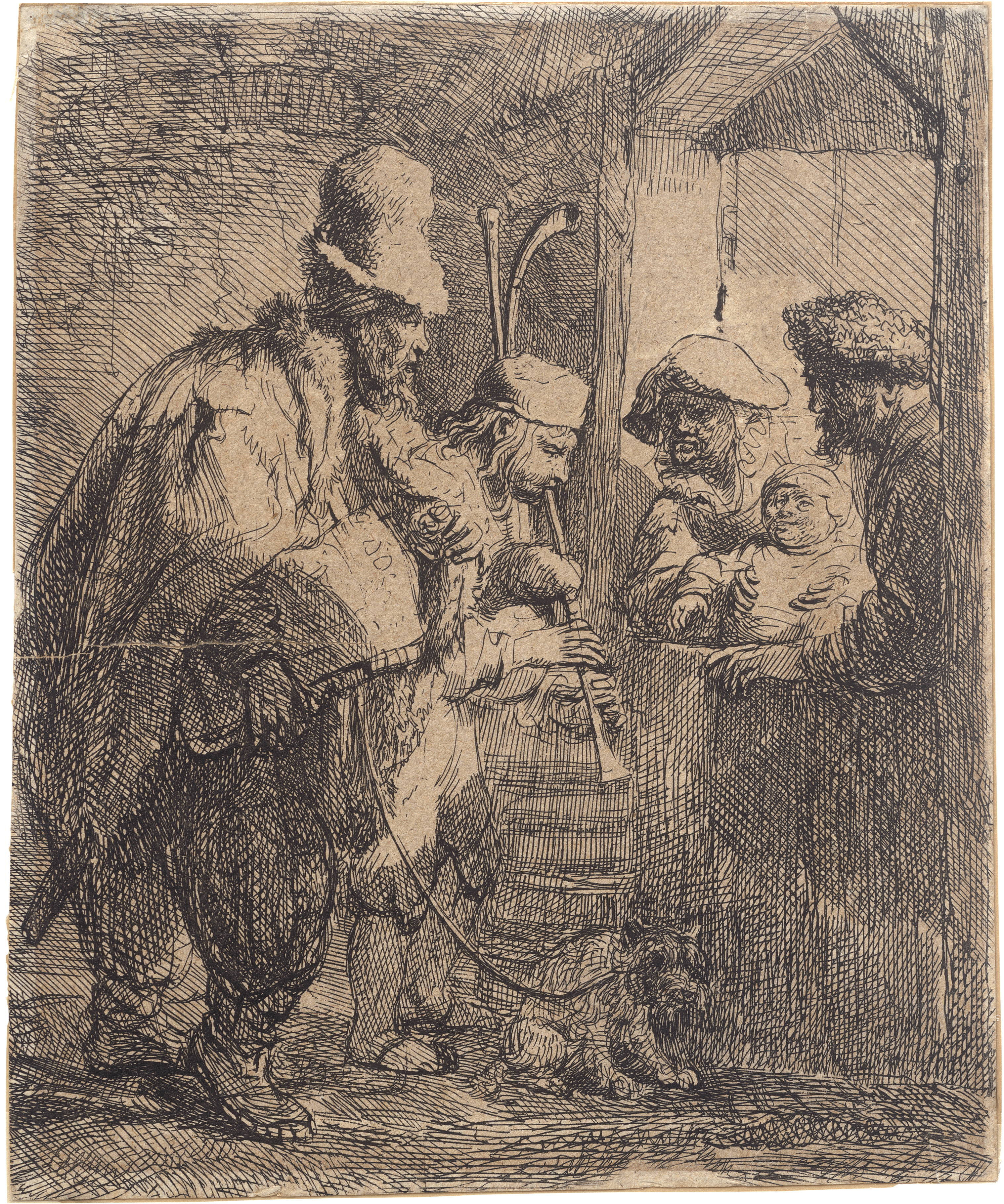 Die wandernden Musikanten. Radierung. 14,1 x 11,6 cm. Um 1635. B. 119, White/Boon (Hollstein) 119 II, Nowell-Usticke 119 III, Hinterding/Rutgers (New Hollstein) 141 III.