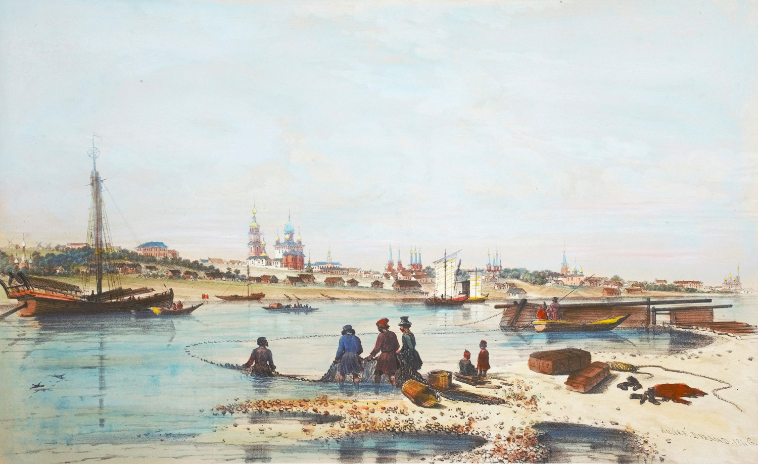 Die Ansichten zeigen "Le Téréma", "Vue générale de mourom", "Vue de Nijni-Novgorod", "Monastère de Simonoff", "Tour d'Ivan-Veliki". – Leicht stockfeckig, sonst gute Exemplare.
