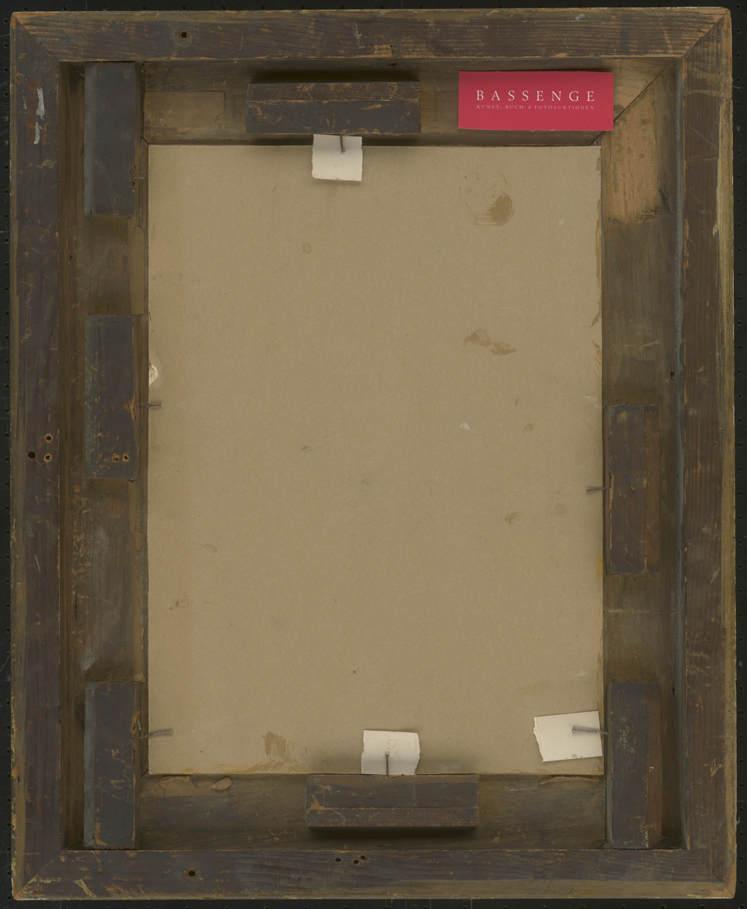 Öl auf Papier, kaschiert auf Malkarton. 36,1 x 26,2 cm. Unten links auf einem kleinen Zettel, montiert in die Darstellung bezeichnet und signiert "Primo dipinto di Rubens Santoro".