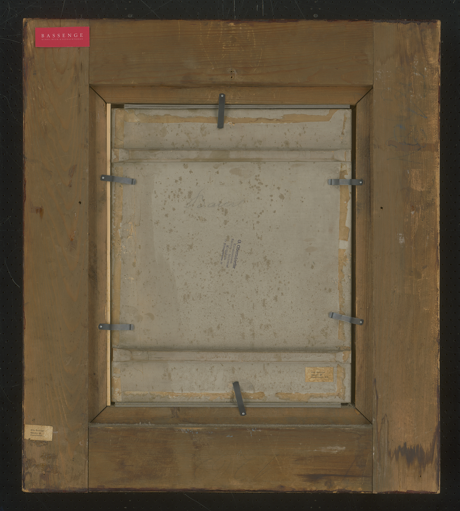 Im Original-Rahmen der Gebrüder Oberndorfer, München (mit dem Stempel). Beigabe: ebenfalls aus der Familie Vorhoelzer die bzw. eine der Original-Reißschienen des Dargestellten, bezeichnet "VORHOELZER. / PL. 174.".