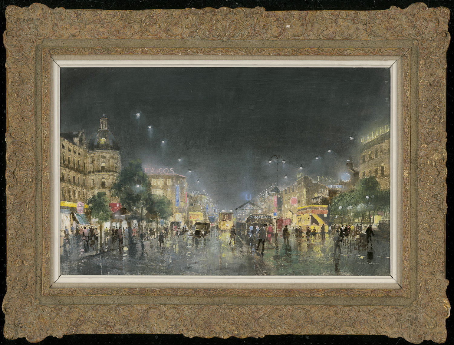 Das Gemälde stellt das rege Treiben auf dem hell erleuchteten Berliner Kurfürstendamm auf Höhe der Uhlandstraße dar. Gut zu erkennen ist links das heutige Maison de France mit der berühmten Paicos-Zigaretten-Werbung, sowie zur Rechten die Leuchtreklamen des Roxy und des Haus Uhland, sowie der U-Bahnhof und die noch bis 1954 dort fahrende Straßenbahn.