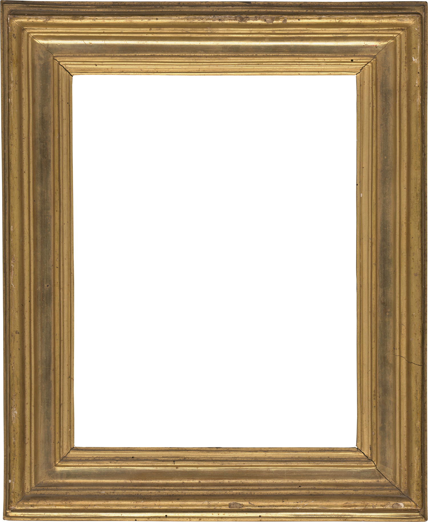 vergoldet, profilierte Sichtleiste, Halbrundstab, ansteigende Kehle, hinterkehltes Wulstprofil, abfallende Kehle als Abschluss. Mit altem Aufhänger.