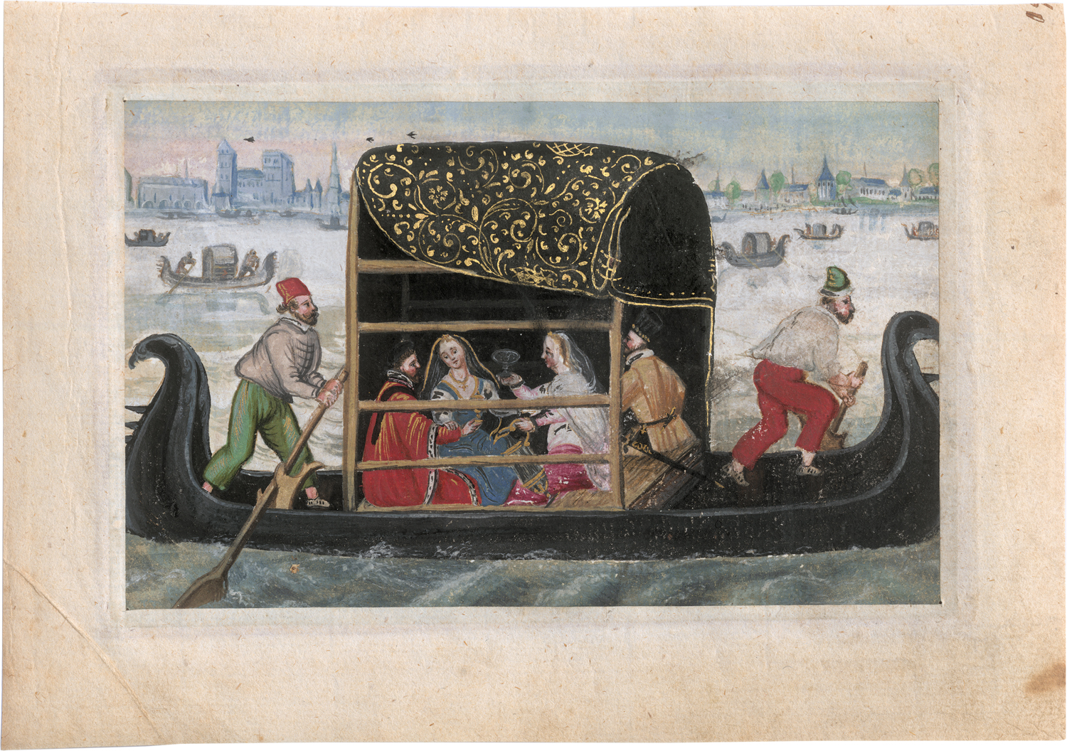 Lot 6503, Auction  126, Deutsch, 1593. Elegante Gesellschaft in einer venezianischen Gondel