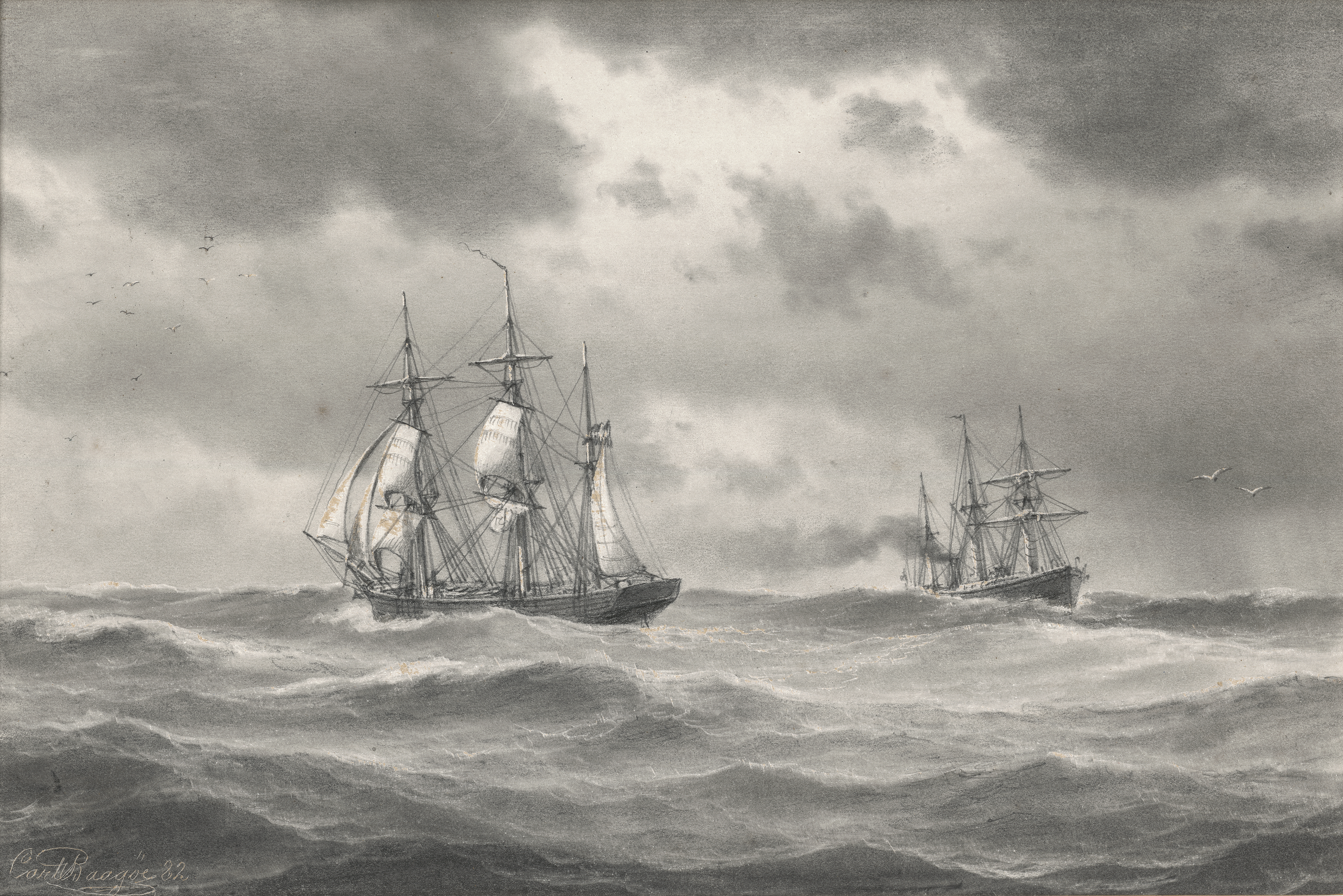 (1829 Kopenhagen - 1902 Snekkersten)Zwei Segelschiffe auf hoher See.