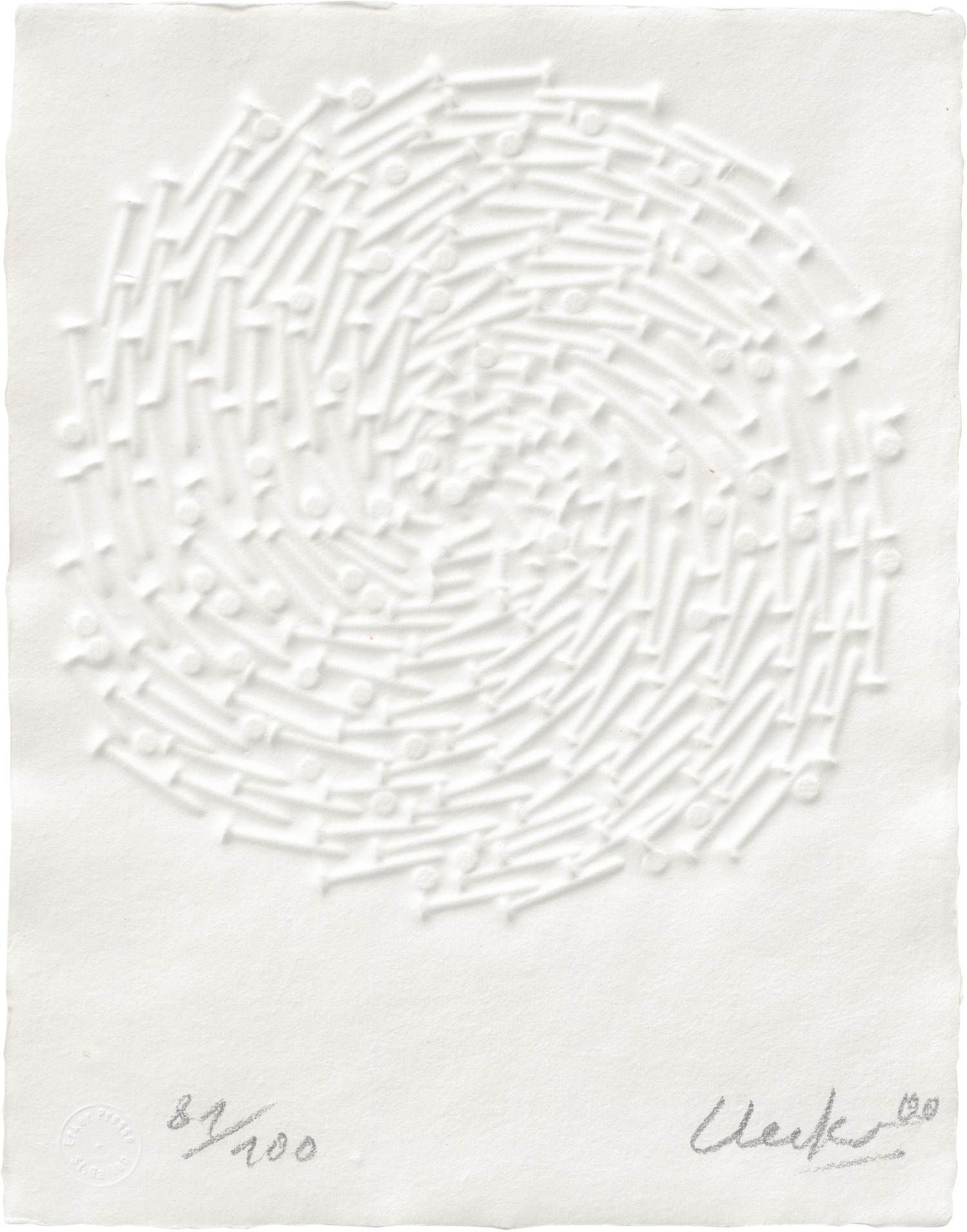 Signiert "Uecker" und datiert. Auflage 100 num. Ex.