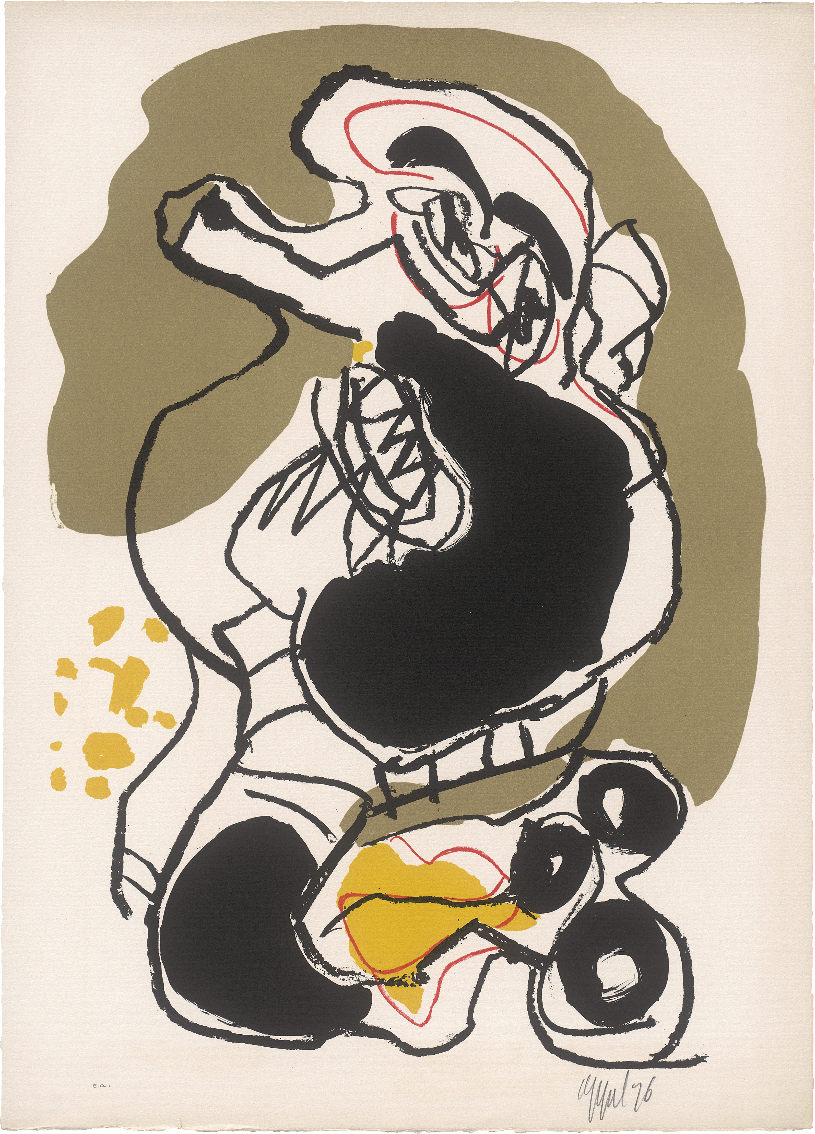 Asger Jorn gehörte wie Appel zu den Mitbegründern der Gruppe CoBrA. Erschienen in einer Auflage von 100 Exemplaren bei der Edition Atelier Clot, Paris. Prachtvoller Druck mit dem vollen Rand, unten mit dem Schöpfrand.