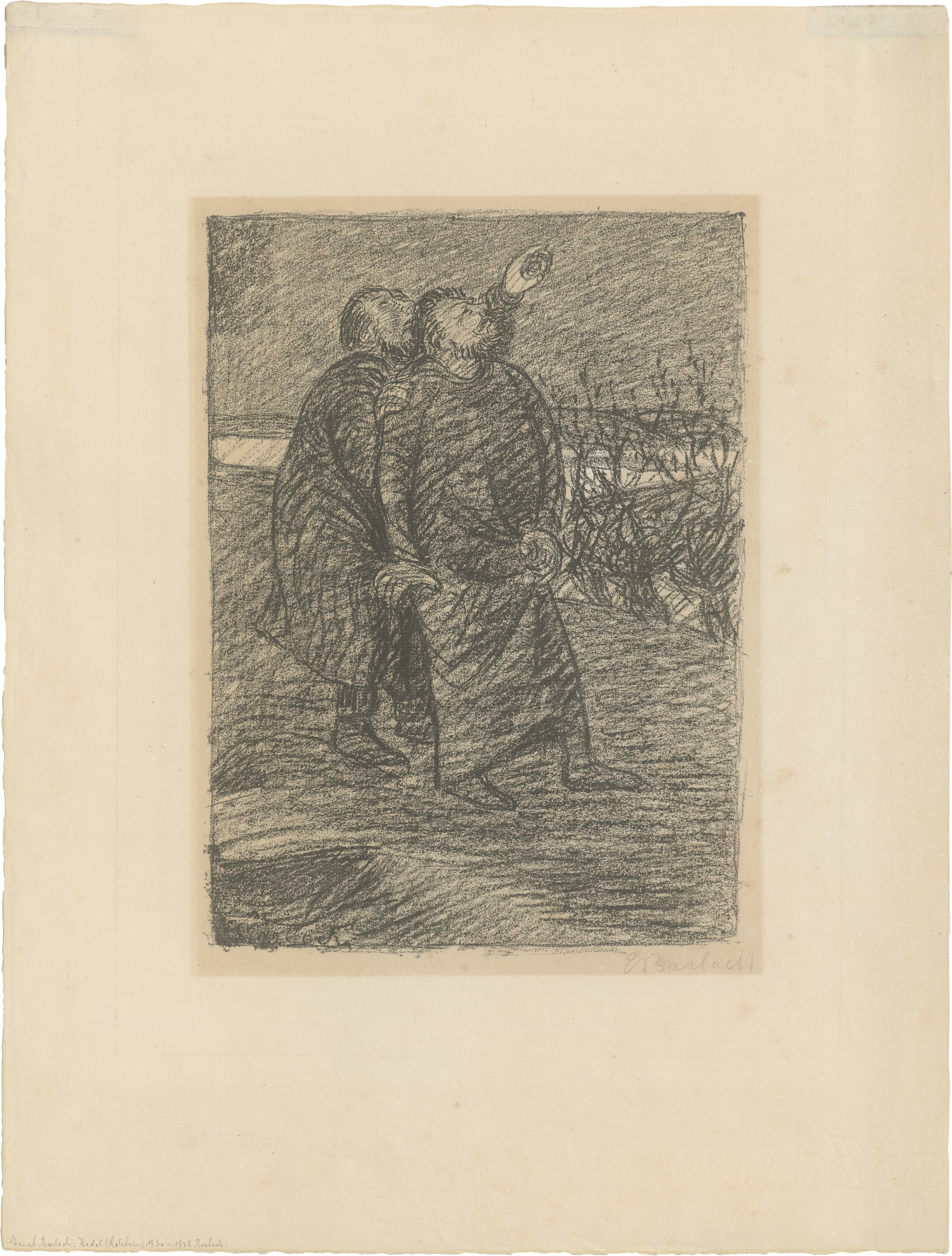 Die Auflage erschien 1919 im Verlag Bruno Cassirer, Berlin. Bereits um 1912 schuf Barlach ein erstes lithographiertes Blatt zum Motiv der Sterndeuter (Laur 11). Prachtvoller, kreidiger Druck mit dem vollen Rand, unten mit dem Schöpfrand.