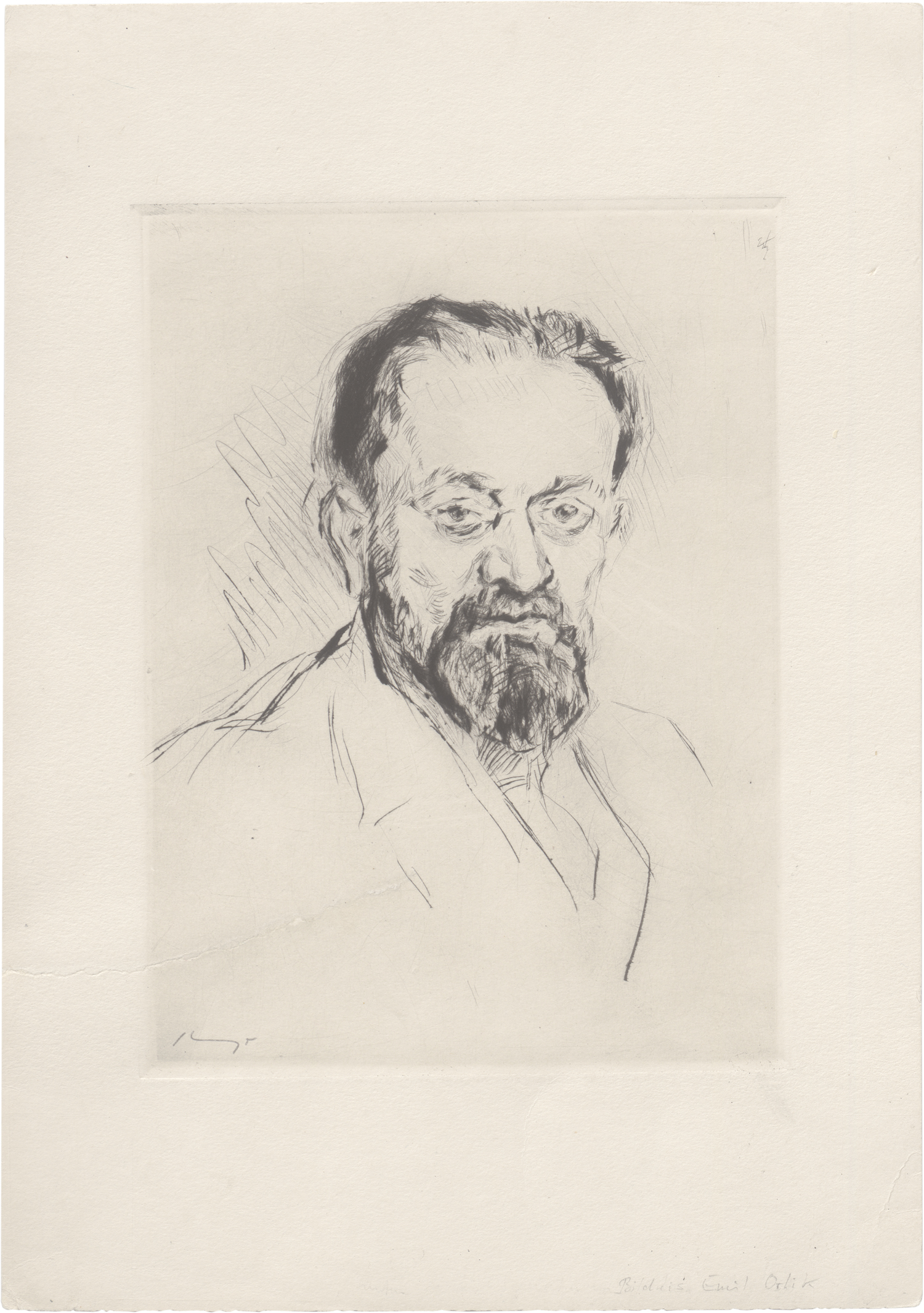 Dabei Arbeiten von und nach Josef Eberz ("Park", 1919, Söhn HdO 44204-7), Walter Leistikow ("Exlibris Ida Schoeller", um 1902, nicht bei Nass), Max Liebermann (zu: Karl Scheffler, "Kunstgespräche im Kriege", aus: Kunst und Künstler, Jg. XIII, H. 3, 1914, Schiefler 199-201, 203, 207 und 210), Ludwig Meidner ("Portrait Rosa Meidner", 1925) und Max Slevogt ("Selbstbildnis mit Hut und Stock", 1908; "Bildnis Emil Orlik", 1922).