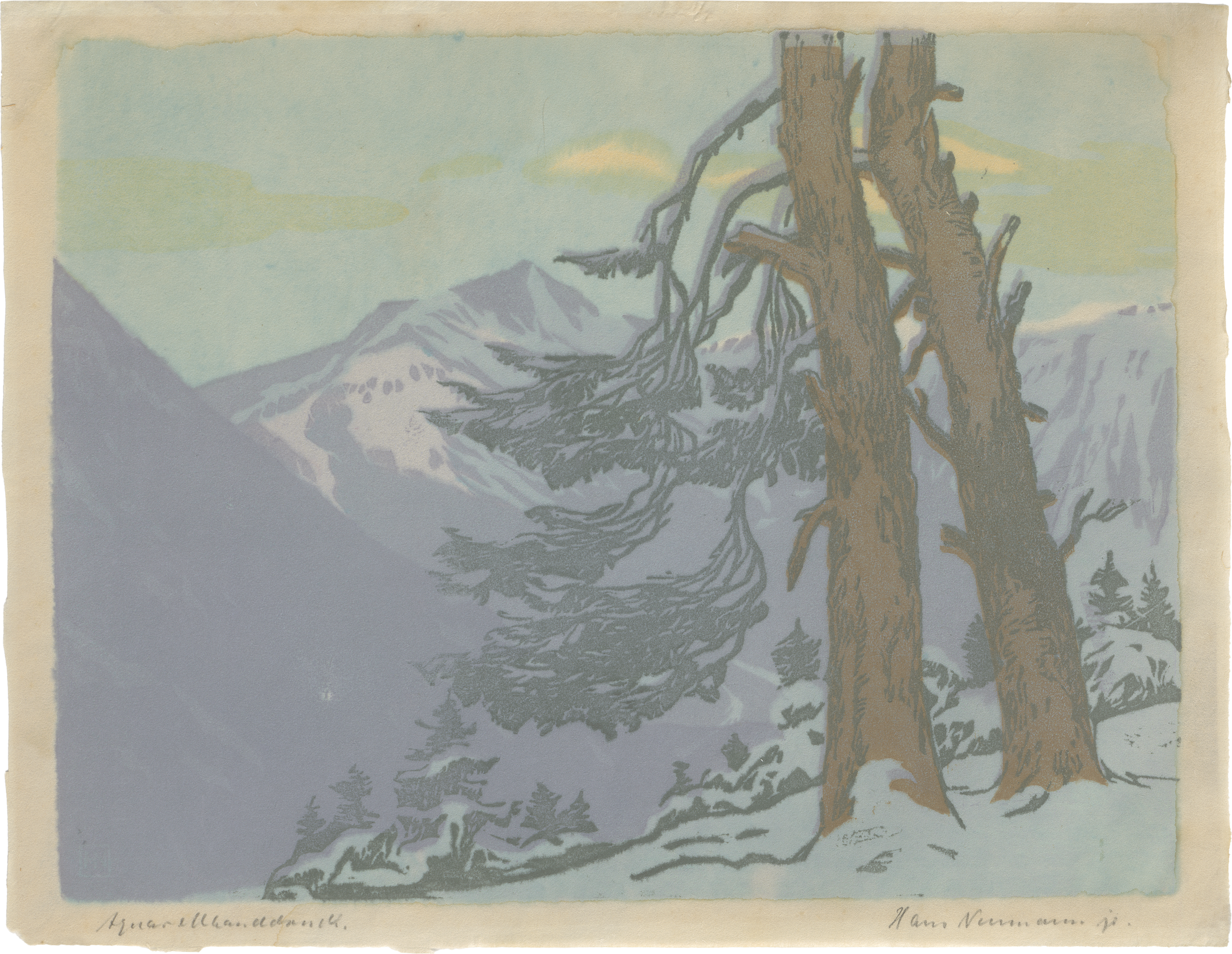 Signiert "Hans Neumann jr." und bezeichnet "Aquarellhanddruck".