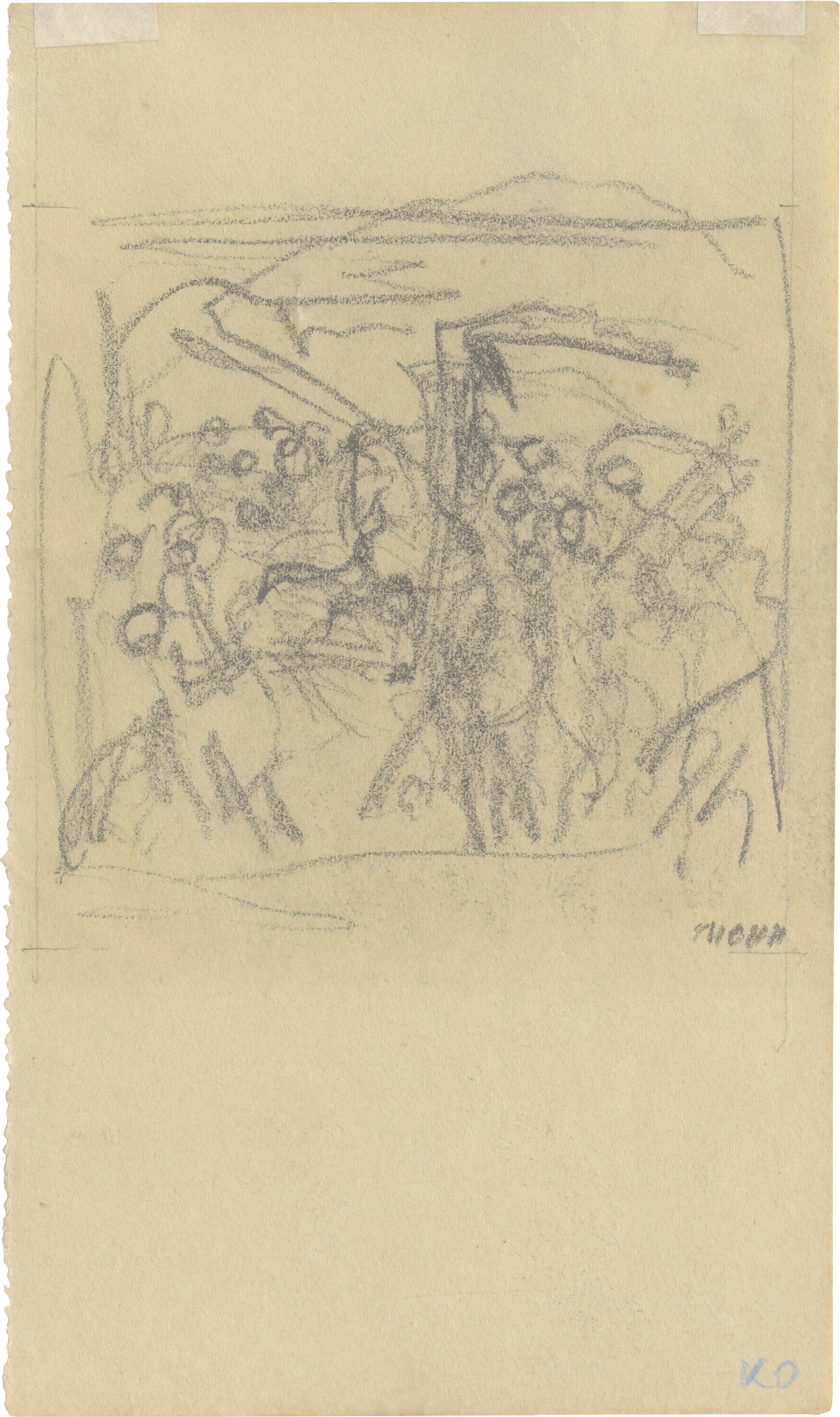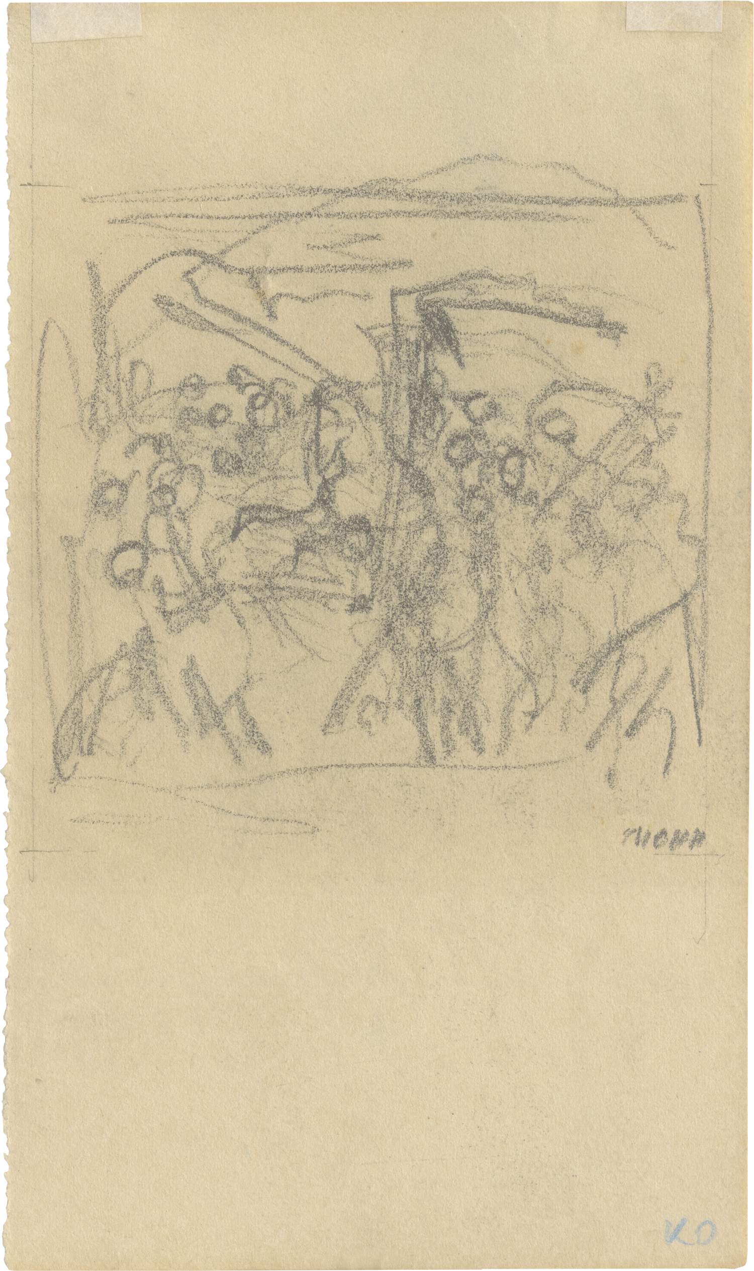 Figurenreiche kleine Studie Oppenheimers zu seiner 1913 entstandenen Radierung "Schlacht".