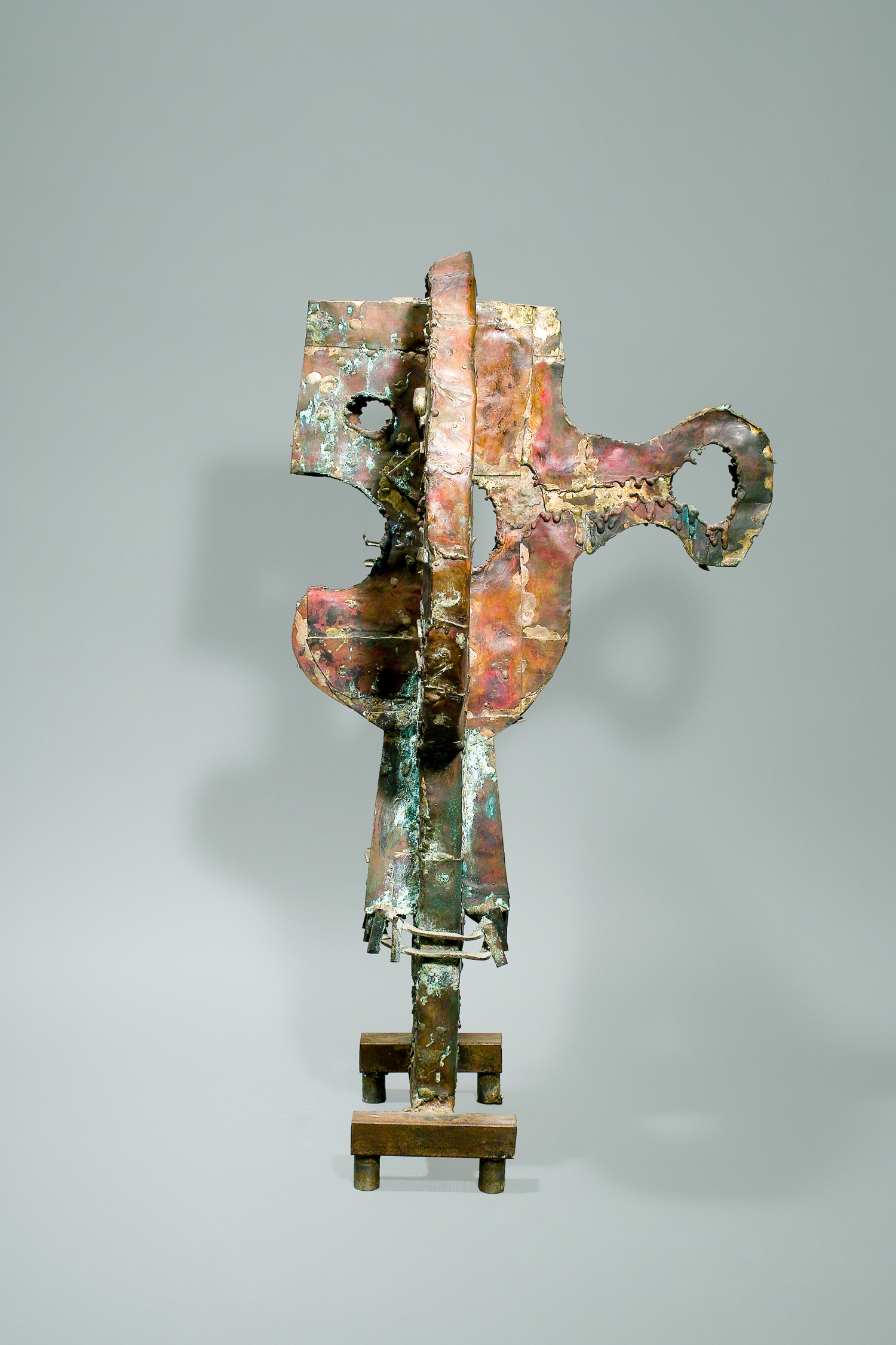Kupfer, geschweißt, auf Sockel aus Kupferbalken. 1972.