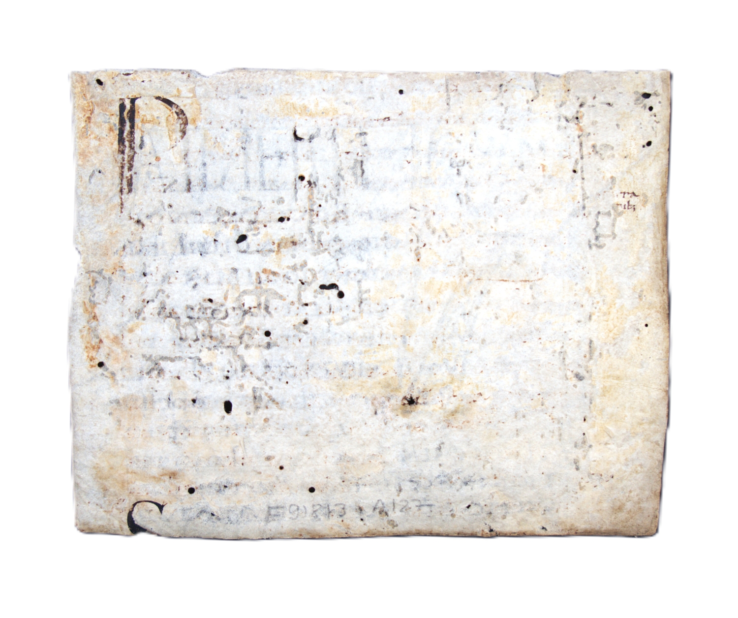 Nach Befundlage wurde das Blatt in der Frühen Neuzeit als Makulatur in einem Bucheinband (wohl 15.-16. Jh.) wiederverwendet und später - aufgrund der qualitätvollen Initiale und des bedeutenden Textes - gezielt herausgeschnitten. Die gut erhaltene Vorderseite und die auf der Rückseite sichtbaren Abschab- und Extraktionsspuren stützen diese Annahme.