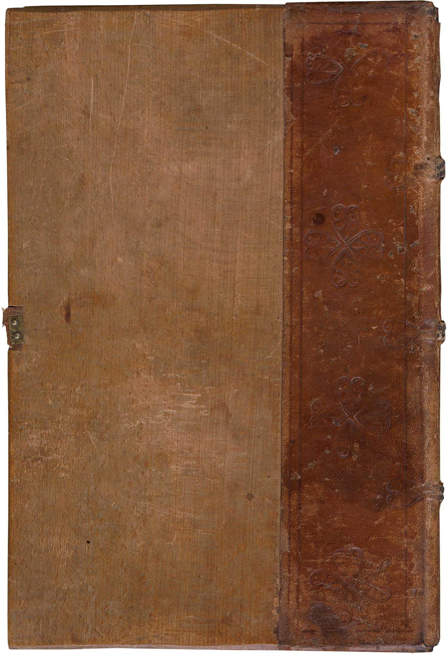 Marquard von Lindau. Das Buch der zehn Gebote. Mit den Sprüchen der Lehrer [und:] Heinrich Seuse. Klage eines sterbenden Menschen. 4 nn., LXXVIII num. Bl. 45-46 Zeilen. Got. Typ. Schriftraum: 21 x 13,2 cm. Format: 30,5 x 20,5 cm. Mit zwölf 5-, 7- unmd 12-zeiligen Schwarzgrund-Initialen mit Schlingwerk-Dekor ("Litterae florentes"), die erste Textseite in Rot und Schwarz gedruckt. Eichenholzdeckelband d. Z. (mit wenigen winzigen Wurmlöchlein) mit breitem blindgeprägtem Kalbslederrücken (Rückenleder brüchig, über den Bünden und Kapitale abgerieben, größere Fehlstellen auf dem VDeckel; ohne Schließe und Schließbeschlag, ohne feste Vorsätze). Venedig, Erhard Ratdolt, 1483.