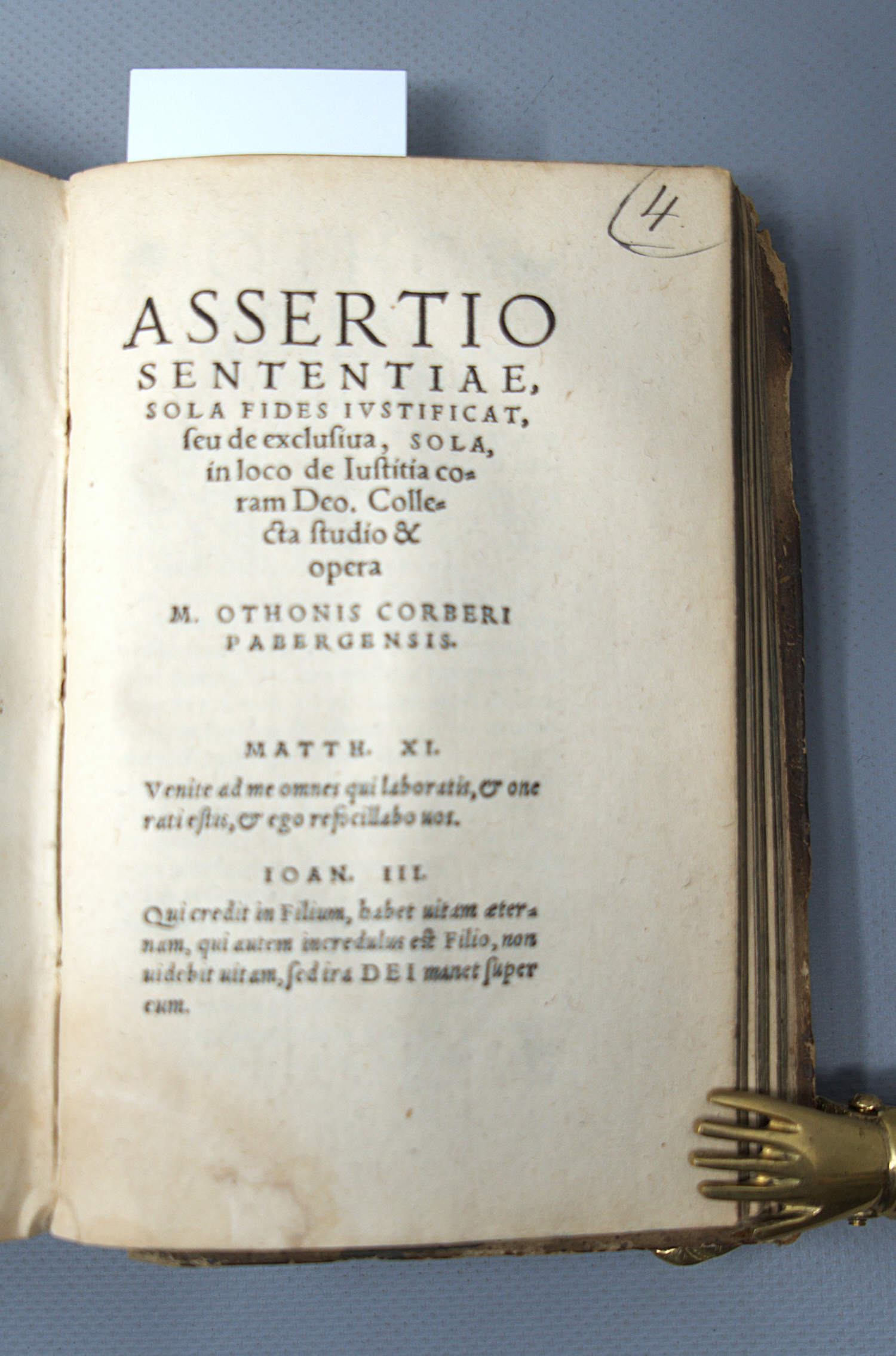 IV. Otho Körber. Assertio sententiae sola fides iustificat. 32 Bl. (Leipzig, Bapst, Valentin d.Ä., 1548). - VD16 K 1882.