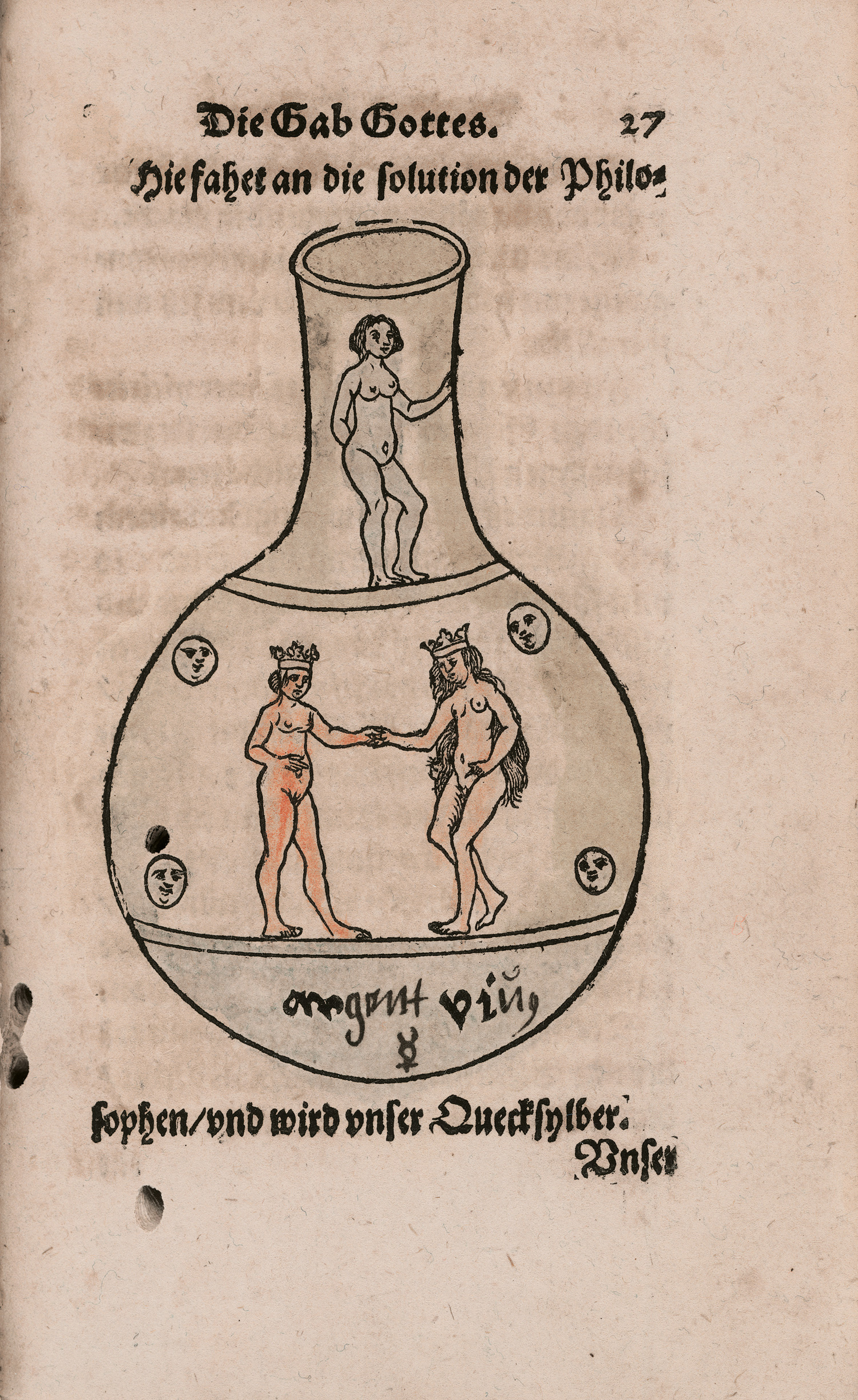 Außerordentlich seltenes alchemistisches Werk mit kolorierten Holzschnitten