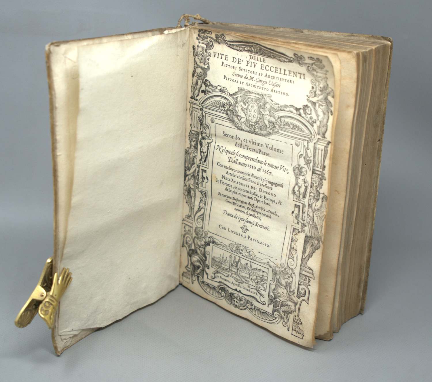 Graesse 6,2, 264. Brunet V, 1096 u. 1097. Thieme-Becker XXXIV, 122ff. und XIV, 577. Adams V 296. Mortimer 515. Cicognara 2391. Gamba 1725. PMM 88. Arntzen-Rainwater H48a. – Die zweite, erste illustrierte Ausgabe, die wesentlich wichtiger war, als die Erstausgabe, die 1550 erschien und auch in Carter und Muirs "Printing and the Mind of Man" aufgeführt ist: "Though a painter and architect, Vasari’s most abiding influence is through this work, the first attempt to give scientific, historical accounts of artists and critical appreciation of their art based on documents and personal knowledge. It became a model for subsequent writings on the history of art" (a. a. O.).