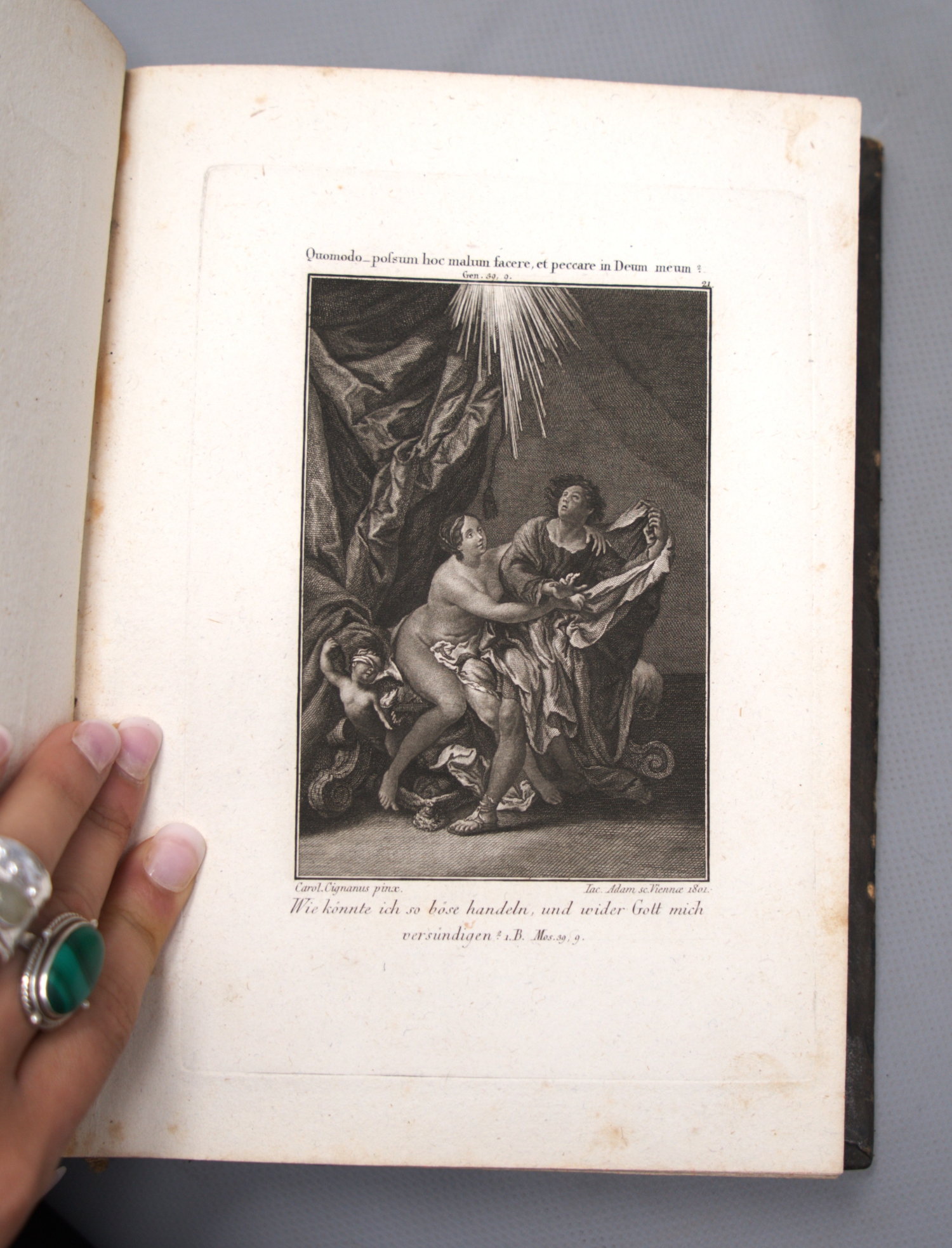 Bilderbibel. Das alte Testament des ewigen Gottes unsers Schöpfers in 91 Kupferbildern vorgestelle. (Und:) Das neue Testament Jesu des Gesalbten unsers Erlösers in 90 Kupferbildern vorgestellet. 2 Bände. 2 Bl. Mit zusammen 181 Kupfertafeln. 23,5 x 17 cm. Lederbände d. Z. (stärker berieben und beschabt sowie mit Wurmspuren) mit goldgeprägten RSchildern und RVergoldung. Wien, J. Adam, um 1810.