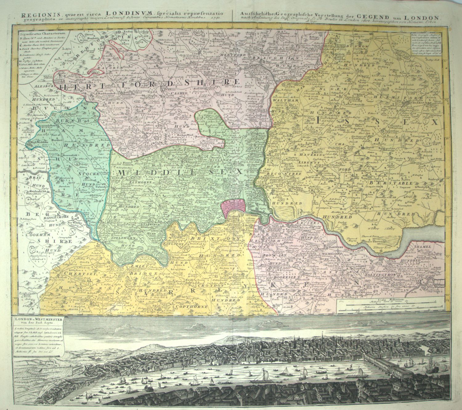 Vorhanden sind: I. Willem und Joan Blaeu. Ager parisiensis vulgo l'isle de France. Grenzkoloriert. Amsterdam 1640. - II. Dieselben. Wiltonia sive Comitatus Wiltoniensis Anglis Wil Shire. Grenzkoloriert. 1659. - III. Georg Braun und Franz Hogenberg. Lutetia vulgari nomine Paris urbs Galliae. Köln 1572. - IV. James Duncan and William Ebden. New Map of the County of Wiltshire. Grenz- und flächenkoloriert. 1811. - V. Johann Baptist Homann. Regionis quae est circa Londinum specialis repraesentatio. Mit Grenz- und Flächenkolorit. Nürnberg 1741. - VI. Johannes Janssonius. Principatus Walliae pars borealis vulgo north Wases. Grenzkoloriert. Amsterdam 1646. - VII. London. Stadtplan. Um 1700. - VIII. Matthaeus Merian. Portugallia et Algarbia quae olim Lusitania. Koloriert. 1646. - IX. Peter Schenk. Somersettensis Comitatus. Somerset Shire. Grenzkoloriert. Amsterdam um 1700. – Meist mit Mittelfalz, teilweise mit kleineren und größeren Gebrauchsspuren, leicht gebräunt am Rand und manchmal mit Randläsuren oder hinterlegten Einrissen. Insgesamt dekorativ.