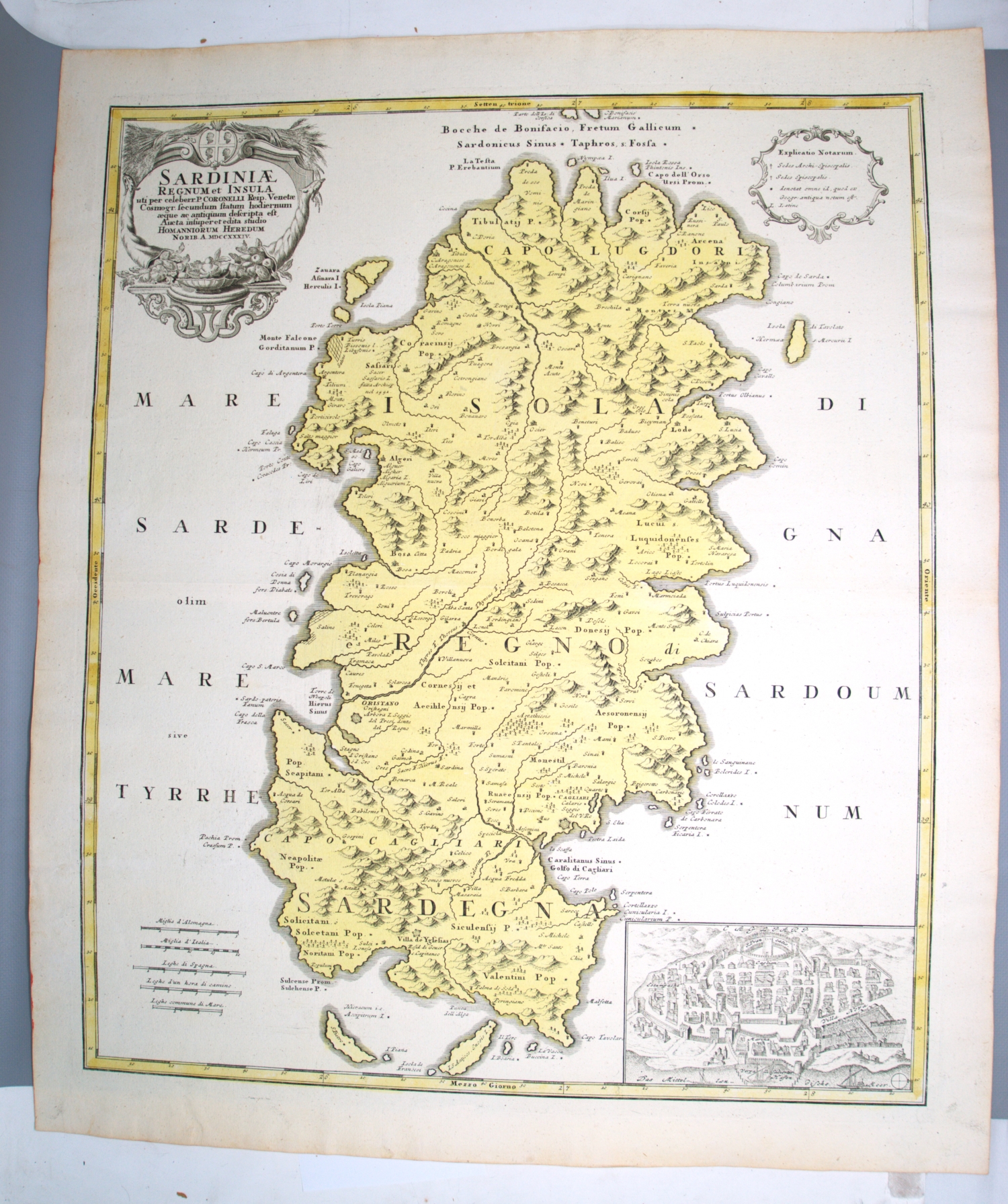 Vorhanden sind: I. Willem Janszoon Blaeu. Calabria Citra olim Magna Graecia. Grenzkoloriert. 1660. - II. Derselbe. Campagna di Roma, olim Latium. Patrimonio di S. Pietro et Sabina. Mit Grenzkolorit. Amsterdam 1640. - III. Derselbe. Calabria ultra olim altera magnae Graeciae pars. Mit Grenzkolorit. Amsterdam 1640. - IV. Derselbe. Terra di Lavoro, olim Campania Felix. Mit Grenzkolorit. Amsterdam, 1644. - V. Georg Braun und Franz Hogenberg. Calaris, Malta, Rhodus, Famaugusta. Köln 1574. - VI. Johann Baptist Homann. Sardiniae Regnum et Insula. Mit Flächenkolorit. Nürnberg 1734. - VII. Derselbe. Peloponesus hodie Moreae regnum. Mit Grenz- und Flächenkolorit. Nürnberg 1730. - VIII. Derselbe. Insula Corsicae accurata Chorographia Tradita. Mit Grenz- und Flächenkolorit. Nürnberg 1735. - IX. Henricus Hondius und Johannes Janssonius. Morea olim Peloponnesus. Koloriert. Amsterdam 1636.