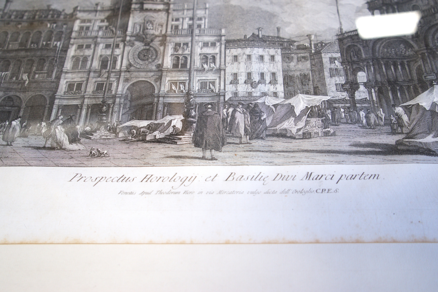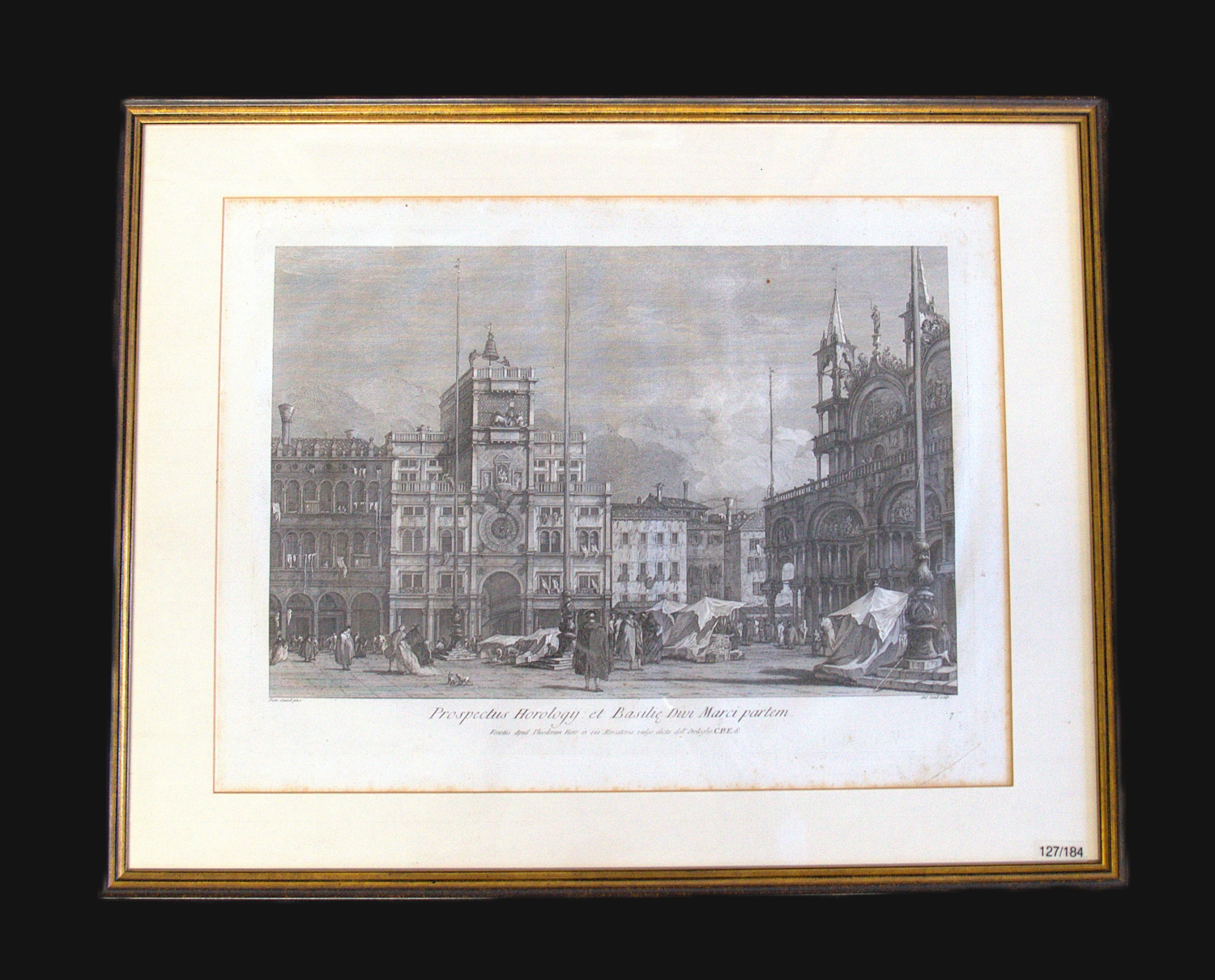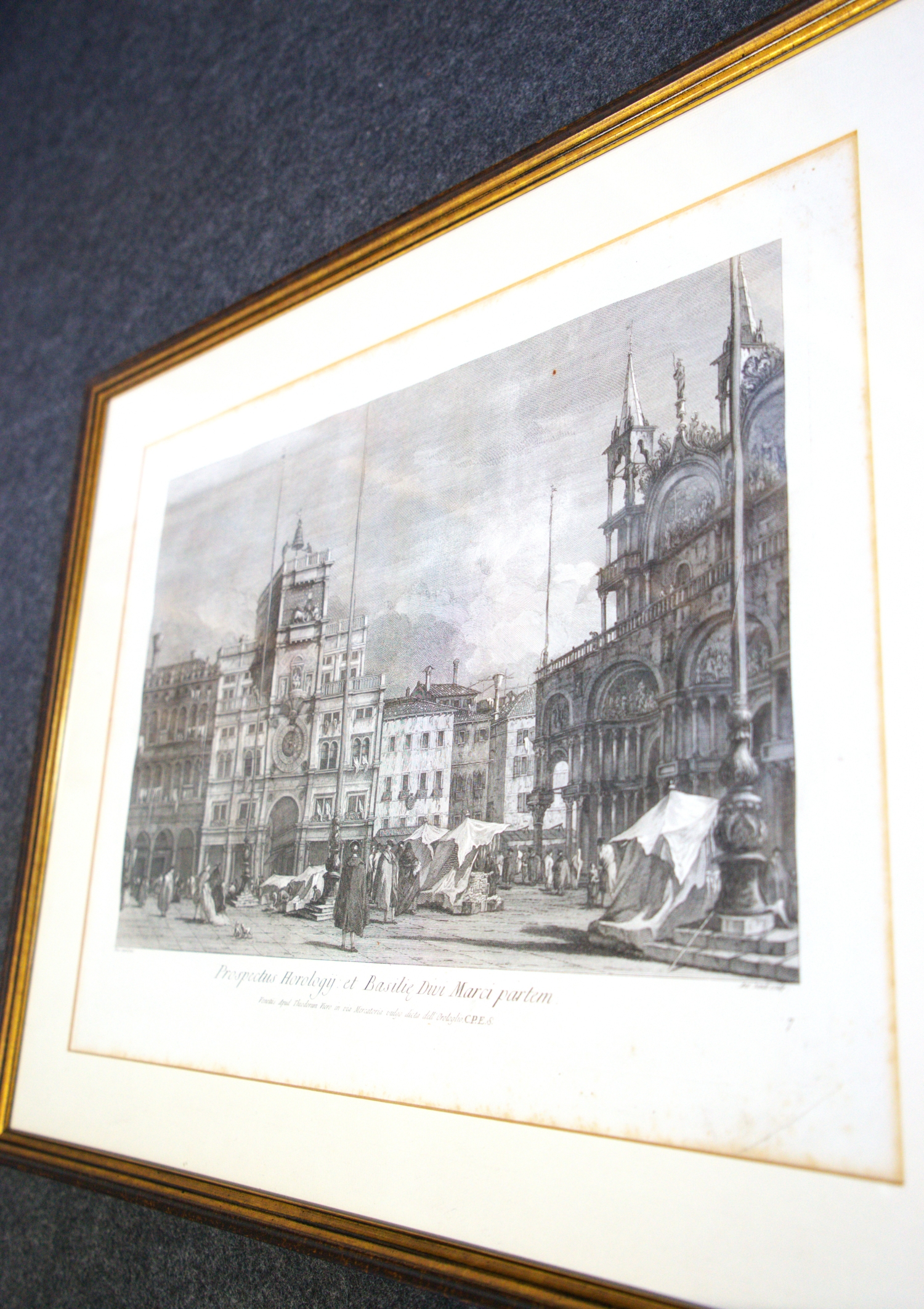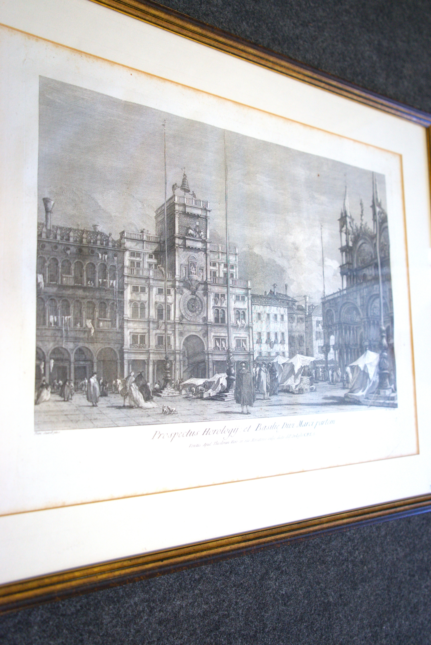 Sandi, Antonio. Prospectus Horologij et Basilie divi Marci partem. Kupferstich. 32,5 x 44 cm (Plattenrand). Unter Glas mit Passepartout in goldgeprägter Holzprofilleiste. Venedig, Theodor Viero, um 1800.