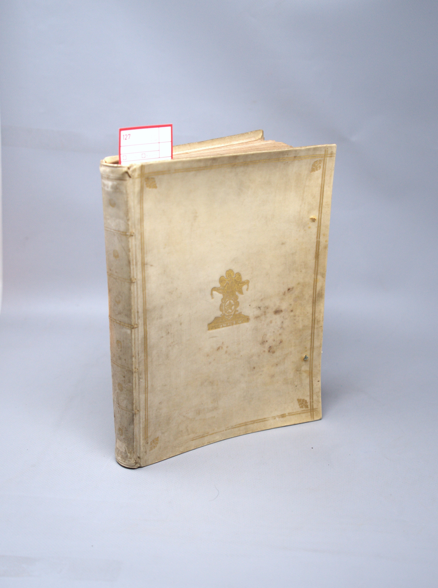 Phaedrus. Liberti fabularum Aesopiarum libri V. Notis illustravit in usum serenissimi principis Nassauii David Hoogstratanus. 15 Bl., 160 S., 42 Bl. Titel in Rot und Schwarz. Mit Kupfertitel von P. Boutats nach J. Goerée, gestochener Titelvignette, gestochenem Portrait von P. van Gunst nach B. Vaillant, 17 Kupfertafeln, 9 gestochenen Initialen sowie 37 gestochenen Textvignetten von Jan van Vianen. 26,5 x 19,5 cm. Pergament d. Z. (etwas fleckig und berieben, etwas geworfen sowie ohne die Verschlussbändchen) mit goldgeprägtem Emblem auf den Deckeln. Amsterdam, François Halma, 1701.