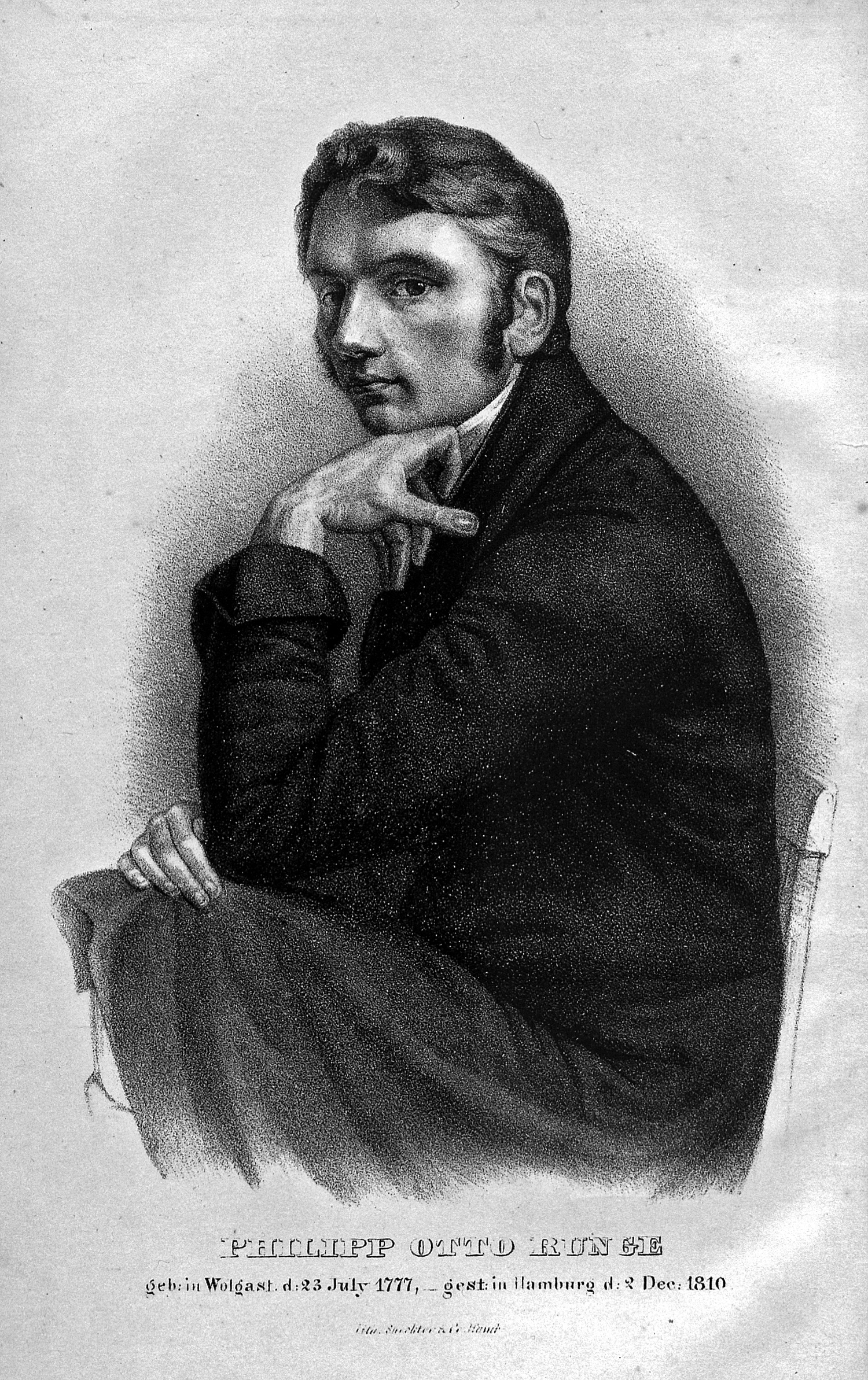Goedeke VI 48, 2. Ehmcke-Hobr. 18. Rümann 2177. Borst 1961. – Erste Ausgabe dieser wichtigen Quellensammlung zu Runges Leben und Werk sowie seinen Kontakten zu den deutschen Romantikern. Enthält die beiden plattdeutschen Märchen vom Machandelboom und vom Fischer und syne Fru. Der zweite Teil mit der Korrespondenz enthält auch den Briefwechsel mit Goethe über dessen Farbenlehre. Die ornamentalen Lithographien zählen zu den bedeutendsten Zeugnissen romantischer Symbolsprache. Die Musikbeilage enthält die "Hymne" der Romantiker, Die Blume der Blumen mit Text von Runge zu einer Melodie von Luise Reichard. Mit dem Subskribentenverzeichnis in Band II und dem Erratablatt. – Mal mehr, mal weniger stockfleckig.