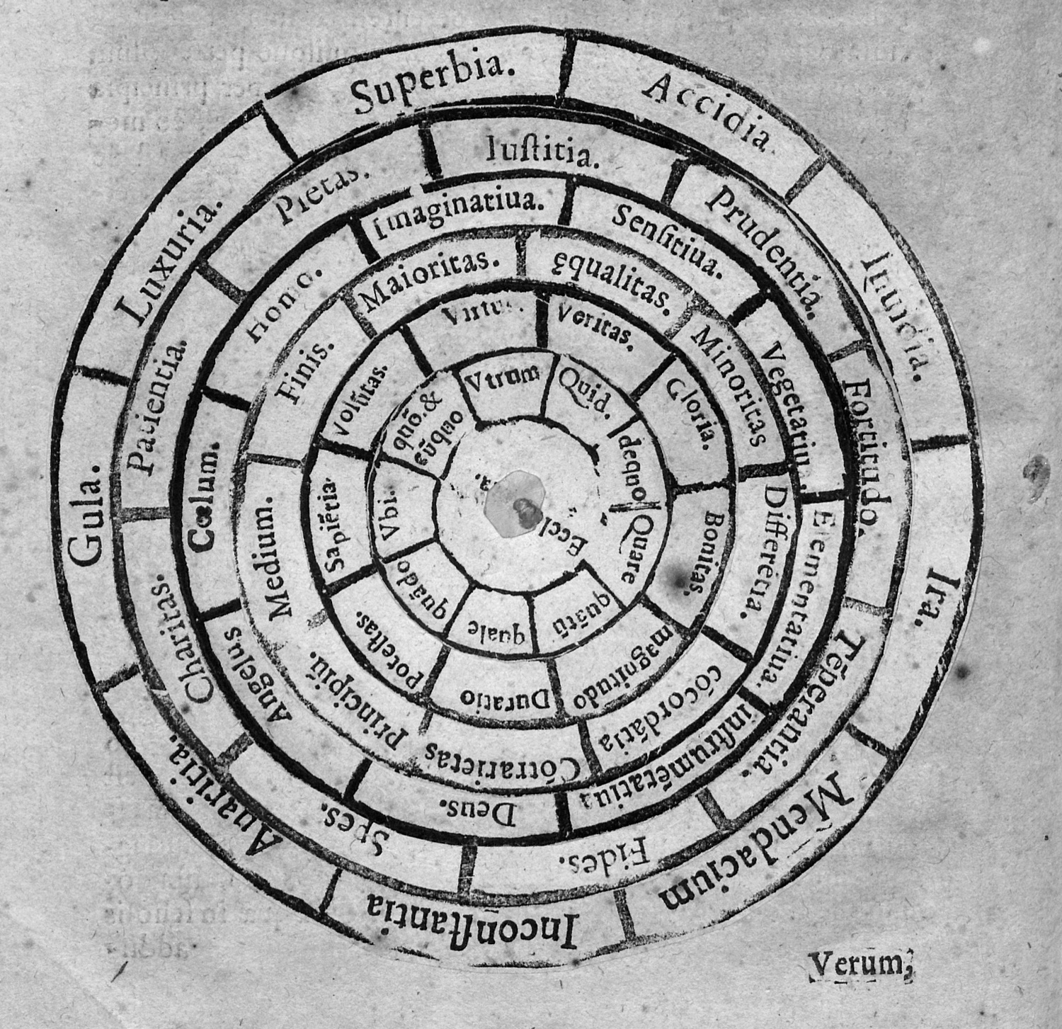 Brüning, Bibliographie der alchemistischen Literatur 1296. – Zweite Auflage des zuerst 1613 ebenda erschienenen umfangreichen methodischen Traktas zum Erlernen aller Wissenschaften, verfasst von dem aus dem spanischen Aragonien stammenden Theologen Pedro Gerónimo Sanchez de Liçaraço (gest. 1614), der an der Kathedrale von Tarazona als Dekan wirkte. Auf Grundlage der Lehren des mallorquinischen Philosophen und Mystikers Raimundus Lullus (1232-1315), die hier auch erläutert werden. Die eine der beiden vorhandenen Volvellen illustriert eine Art "Begriffskombinations-Maschine". – Es fehlt eine der beiden Volvellen (auf Seite 65). Blatt D2 mit Eckabschnitt (ohne Textverlust), Titel zur Hälfte gelöst, vorderes Innengelenk geplatzt. Insgesamt etwas gebräunt und braunfleckig. Zweispaltiger Druck.