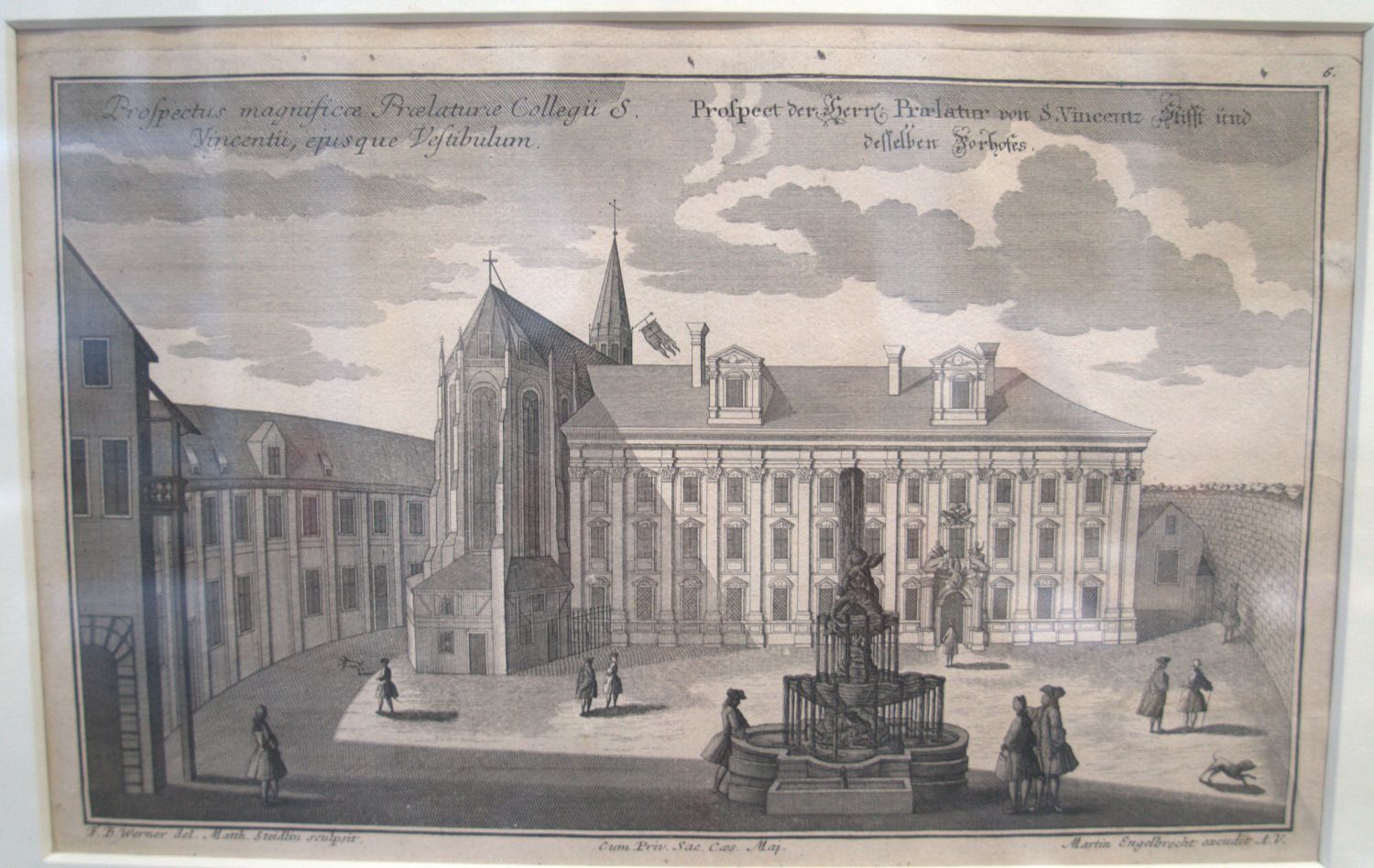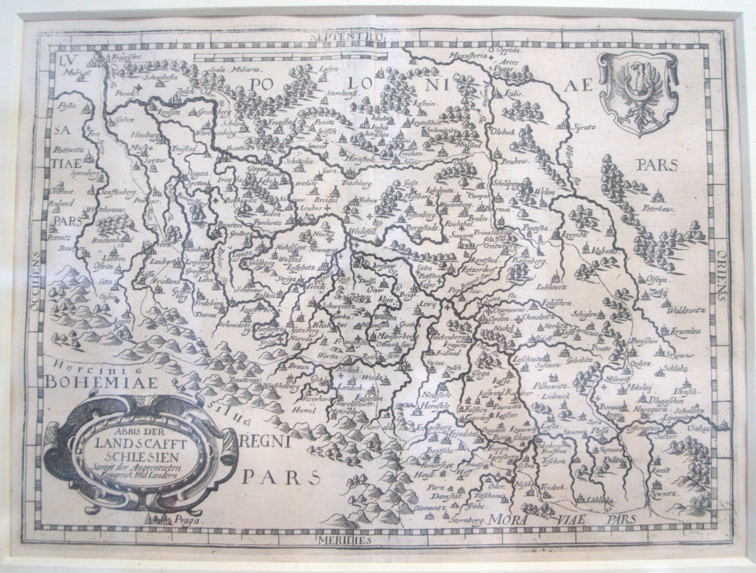 Vorhanden sind: I. Hartmann Schedel. Presslau. Kolorierter Holzschnitt aus der verkleinerten "Weltchronik". Augsburg 1500. - II. Matthäus Merian. Abris der Landscafft Schlesien samt der Angrentzeten Königreich und Ländern. Kupferkarte. Frankfurt 1646. - III. Derselbe. Wratislauia. Breßlaw. Kupferkarte. 1650. - IV. Plan der Bataille, 22. Nov. 1757 . bey Breslau. Kolorierter Kupferstich. Um 1760. - V. Martin Engelbrecht. Prospect der Kirch und Closters zu S. Dorothea auf der Schweidnitzischen gasse der P. P. Minoriten. Teils kolorierter Kupferstich von M. Steidlin nach F. B. Werner. Augsburg, M. Engelbrecht, um 1740. - VI. Derselbe. Prospect der Herr Praelatur von S. Vincentz Stifft und desselben Forhotels. Kupferstich von M. Steidlin nach F. B. Werner. Augsburg, M. Engelbrecht, um 1740. - VII. Derselbe. Prospect deß Gymnasü Mariae Magdalenae mit ümligender gegend. Kupferstich von M. Steidlin nach F. B. Werner. Augsburg, M. Engelbrecht, um 1740. - VIII. Das Fürstenthum Bresslau zum Bresslauischen Ober Amt gehörig. Grenzkolorierter Kupferkarte mit 3 Insetkarten. Berlin, Schleuen, um 1774. - IX. Vue de l'eglise de St. Marie Madelaine à Breslau. Guckkastenblatt. Kolorierter Kupferstich. Augsburg ca. 1760. - X. Franz J. J. von Reilly. Des Herzogthums Schlesien Fürstenthümer Sagan und Glogau oder die zur glogauischen Kammer gehörigen Kreise Glogau, Freystadt, Guhrau, Sprottau, Grünberg, Schwibusin, u. Sagan mit der freyen Standesherschaft Beuthen-Carolath. Nro. 106". Grenz- und flächenkolorierte Kupferstichkarte von Franz J. J. von Reilly. Wien, Reilly, 1791. – Teils papierbedingt gebräunt, mit Falzen und kleineren bis größeren Gebrauchsspuren. Nicht ausgerahmt, Versand nur ohne Rahmen.
