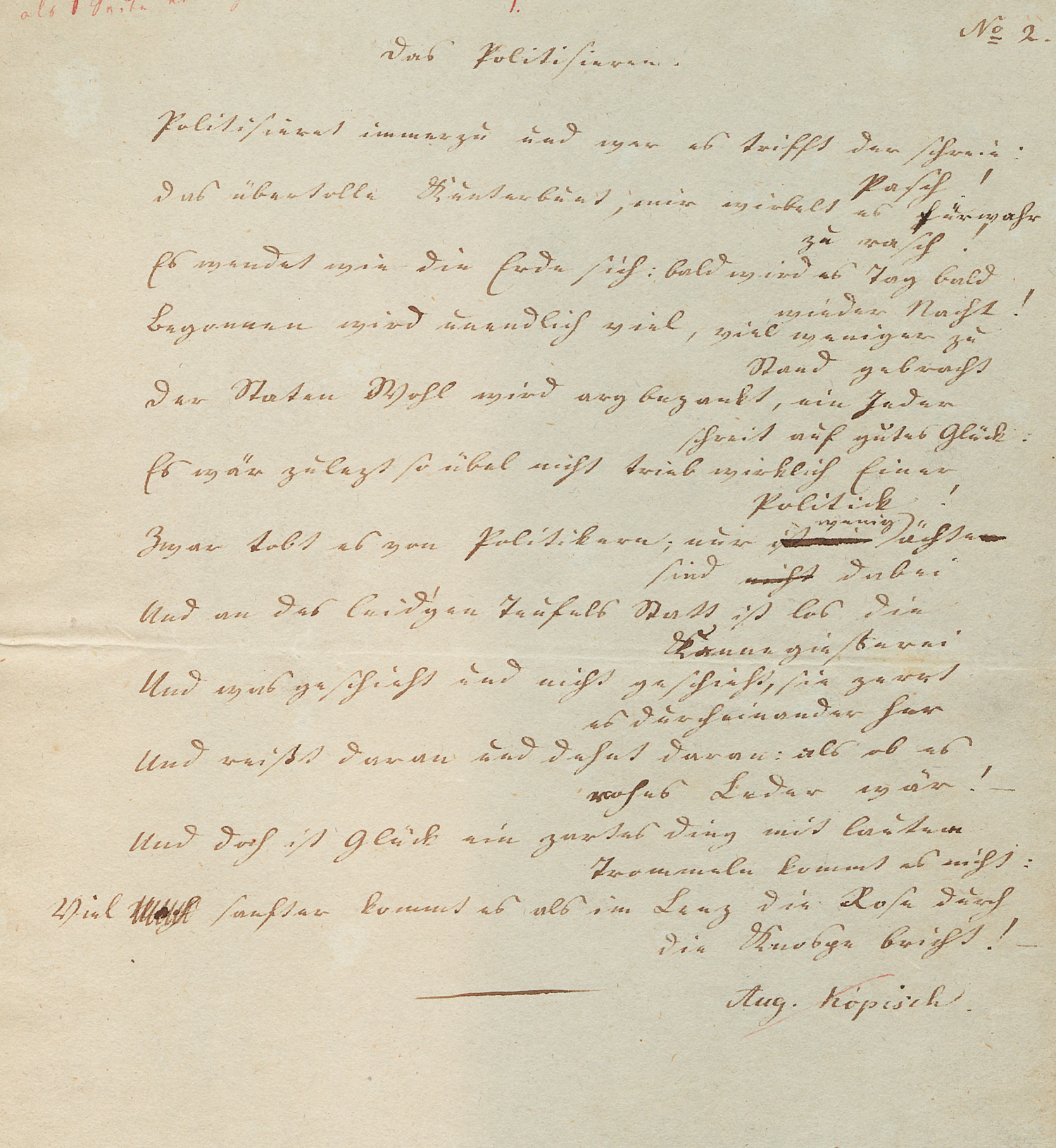 (1799-1853)Signiertes Gedichtmanuskript "Das Politisieren". 1833